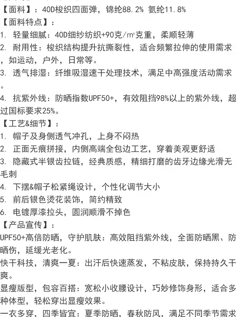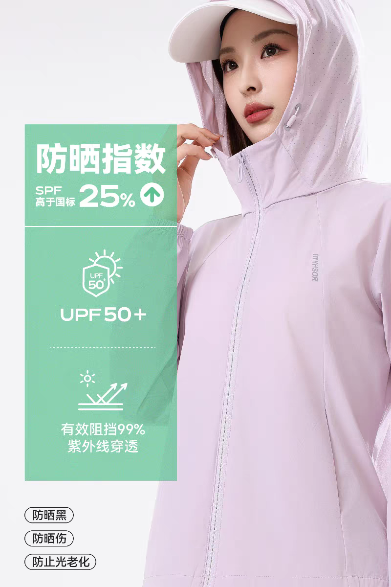 竺依冰感轻弹防晒衣、女士防紫外线透气连帽防晒服夏季薄外套