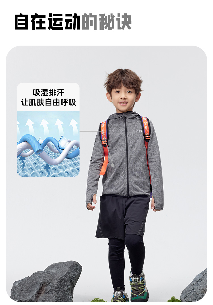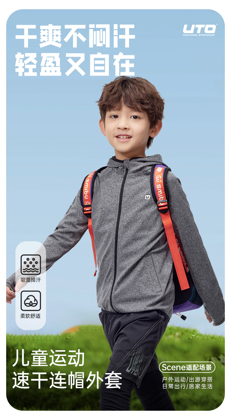 UTO/悠途户外运动渐变款儿童保暖套装秋冬季紧身圆领弹力速干长袖
