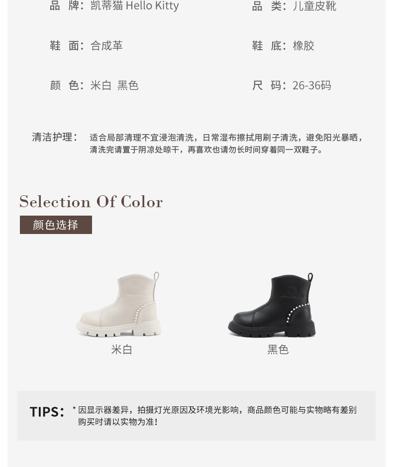HelloKitty童鞋女童马丁靴春秋儿童皮靴子中大童短靴防滑26-36 K4536963