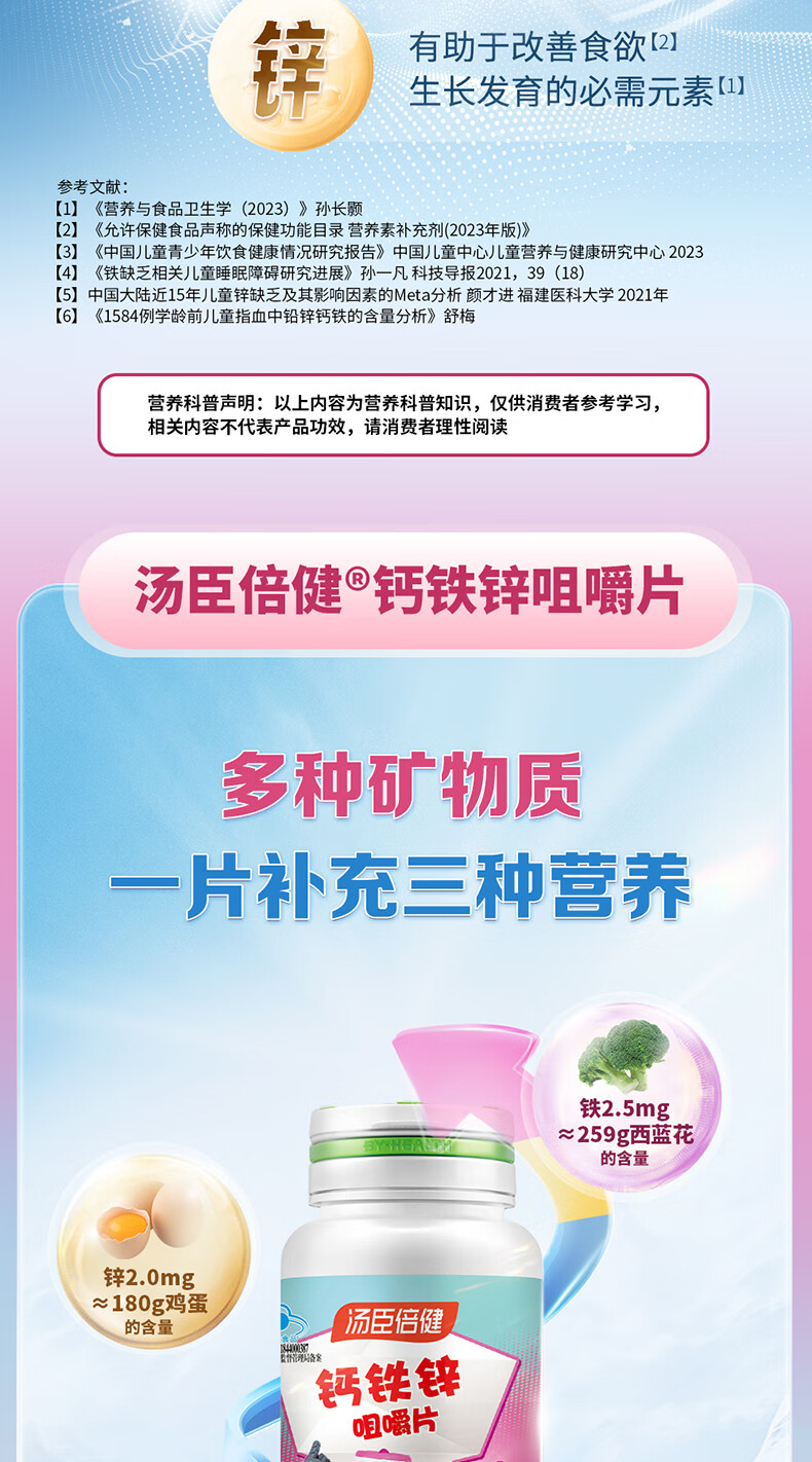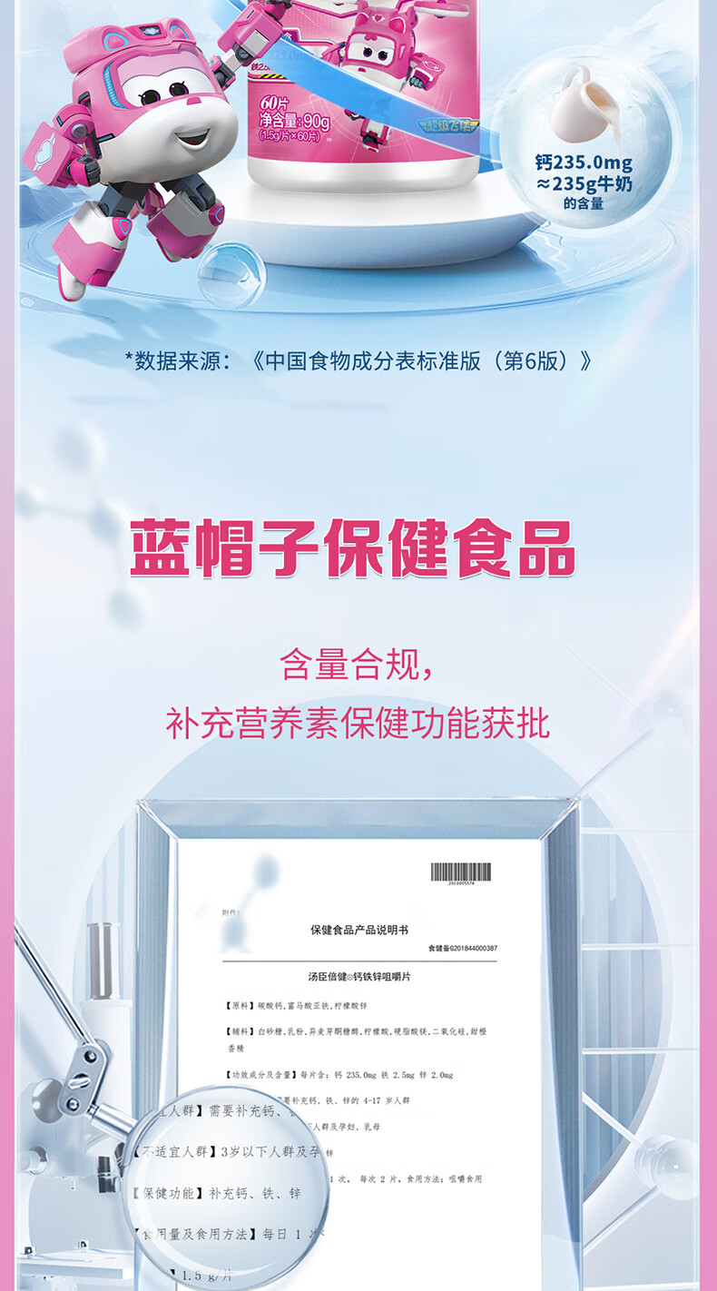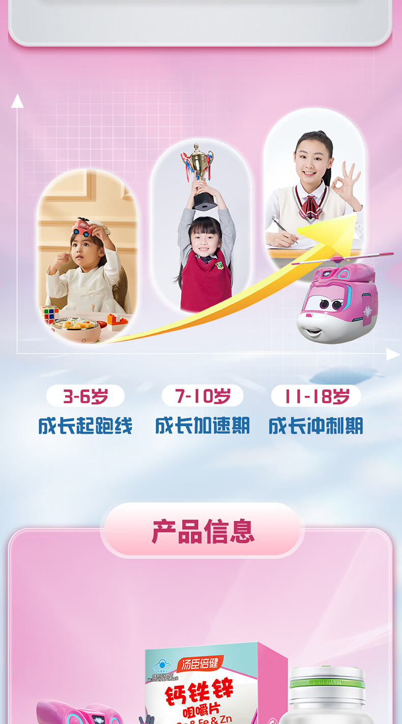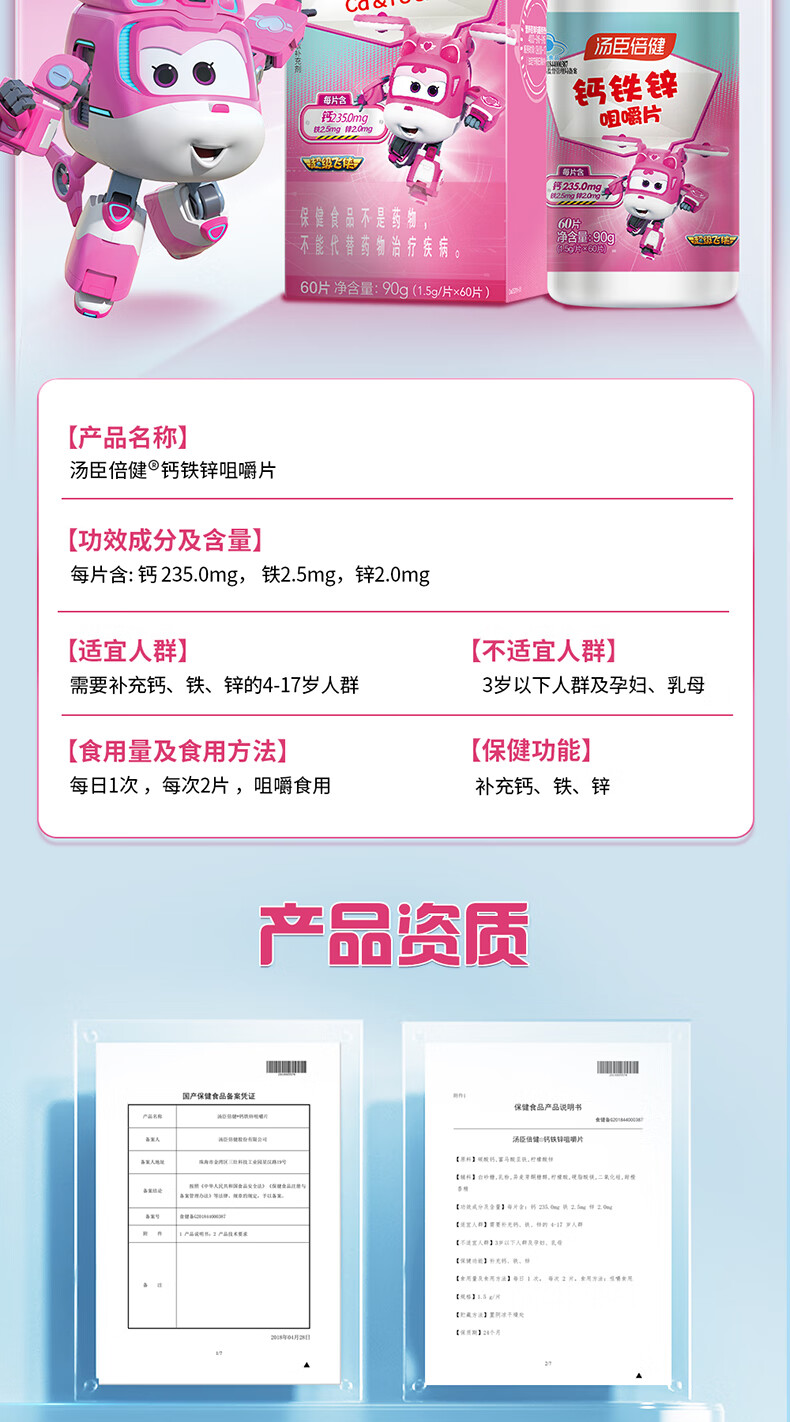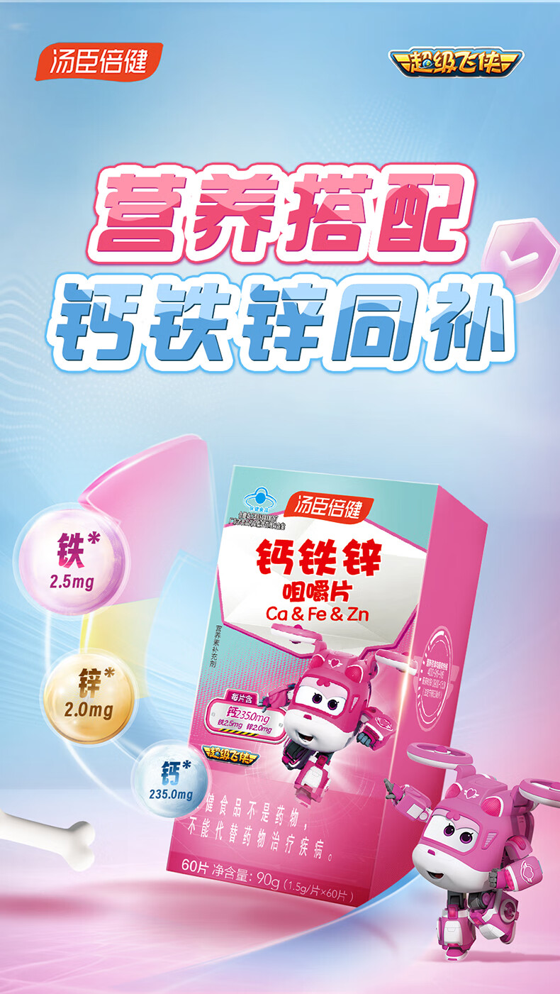 汤臣倍健钙铁锌咀嚼片-超级飞侠装(60片)青少年儿童钙片4-17岁补钙