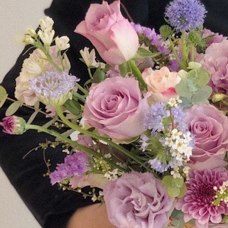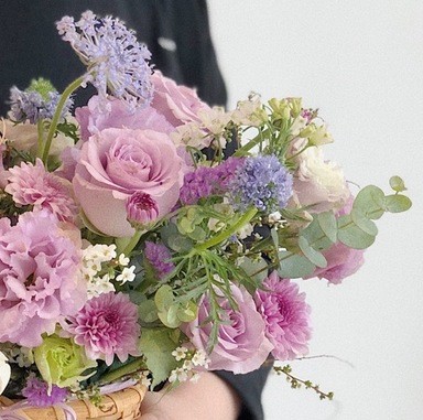 紫色系:海洋之歌玫瑰、雏菊、康乃馨、翠珠、飞燕