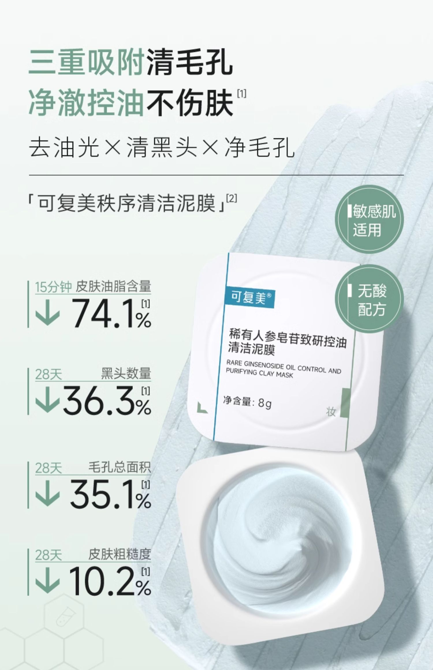 【可复美秩序清洁泥膜】可复美稀有人参皂苷致研控油清洁泥膜 8g*10颗/盒