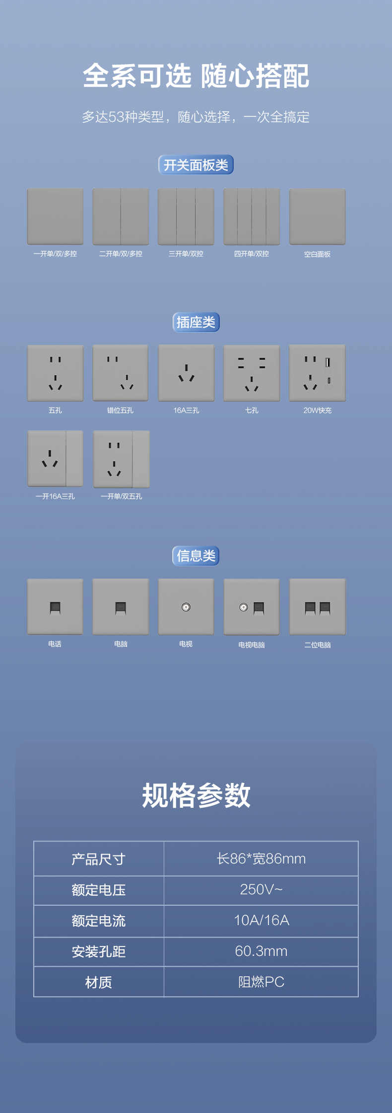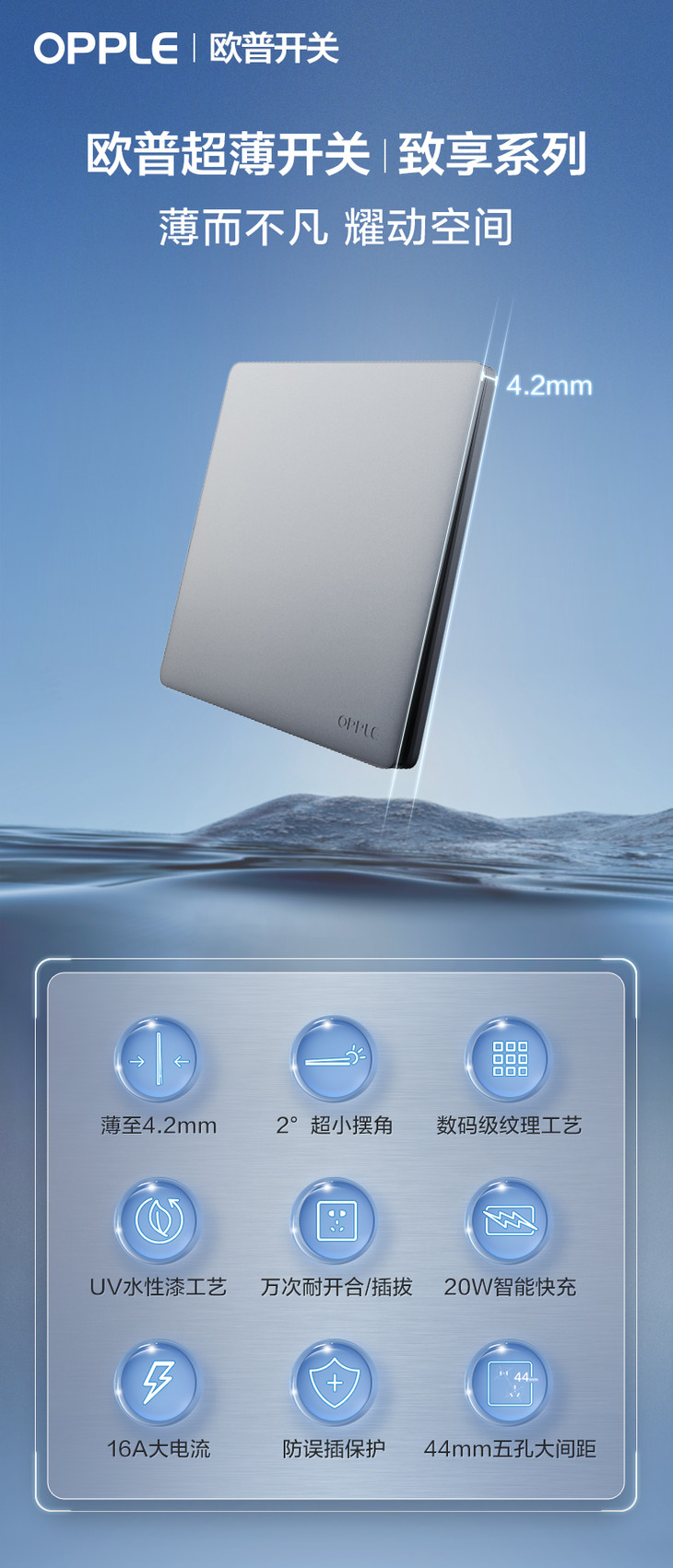 欧普(OPPLE)超薄开关插座T02致享水性漆86型开关面板16A大功率5五孔二开多控