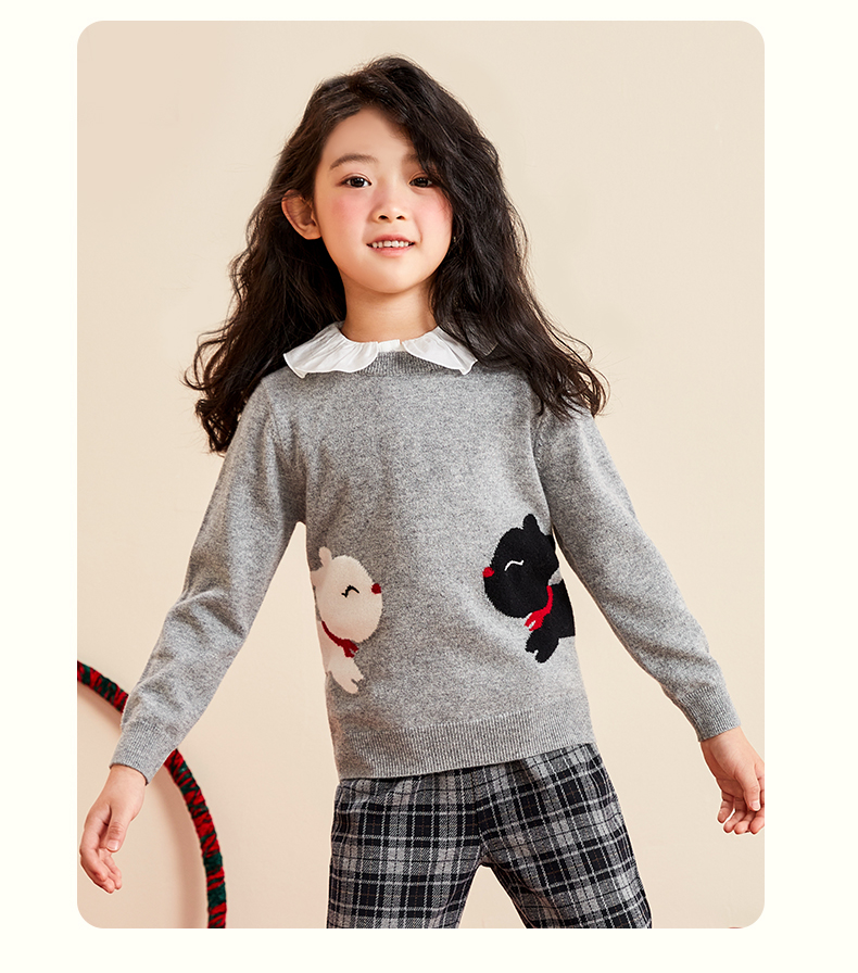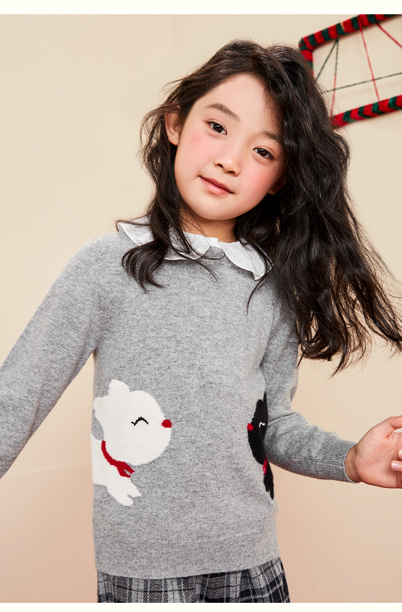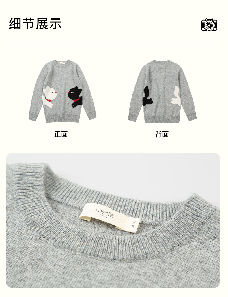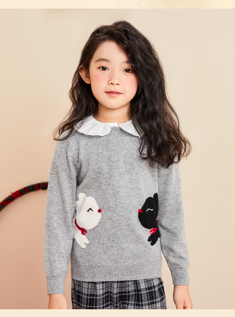 mettekids女童羊绒衫2022秋季新款毛衣儿童洋气卡通薄款针织衫