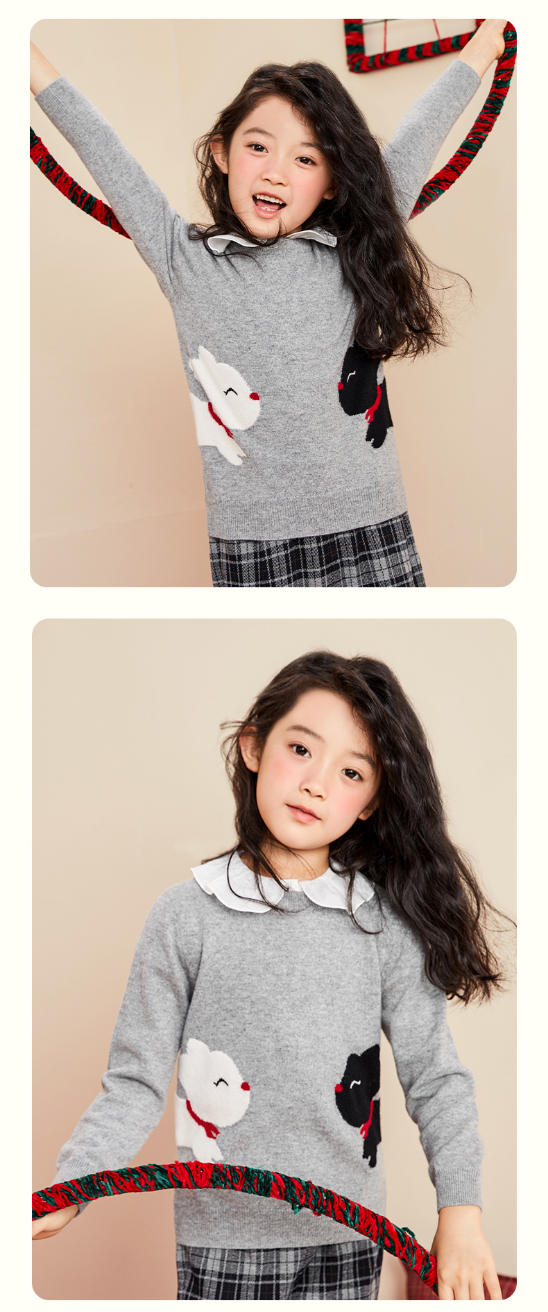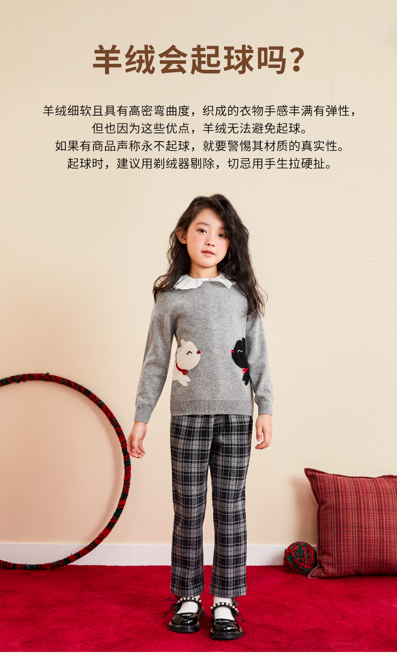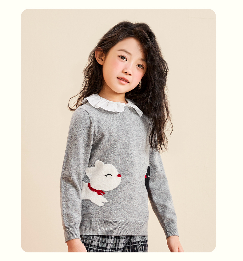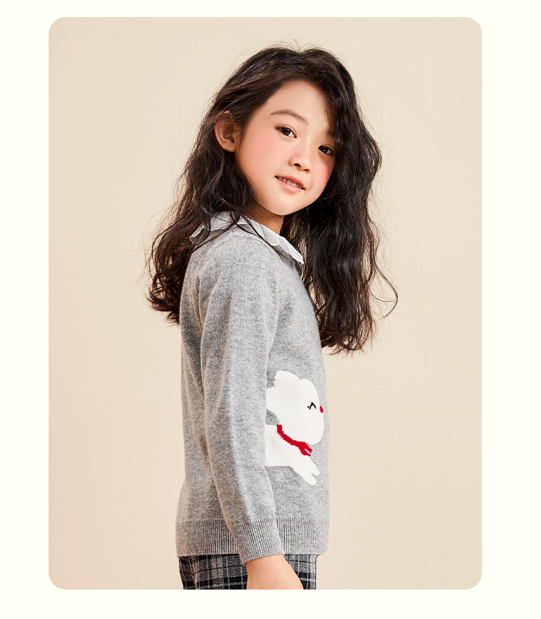 mettekids女童羊绒衫2022秋季新款毛衣儿童洋气卡通薄款针织衫