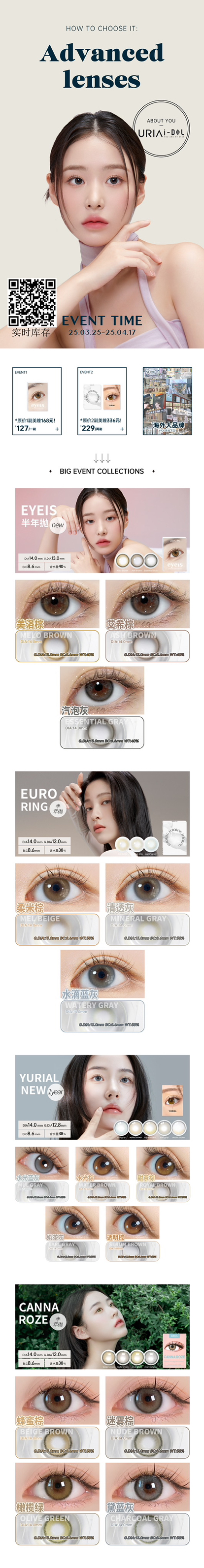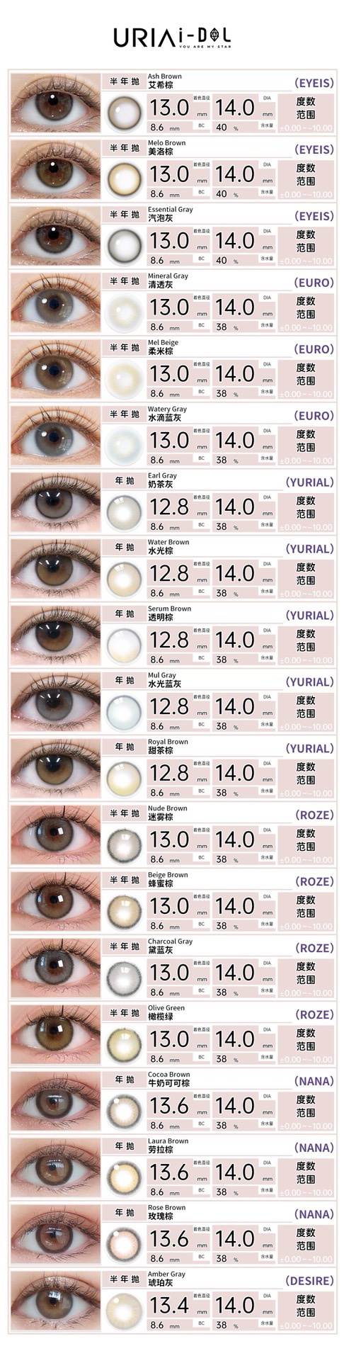 【半年抛】uria&idol 半年抛 小直径 直径14.0 1片装 一副拍2片