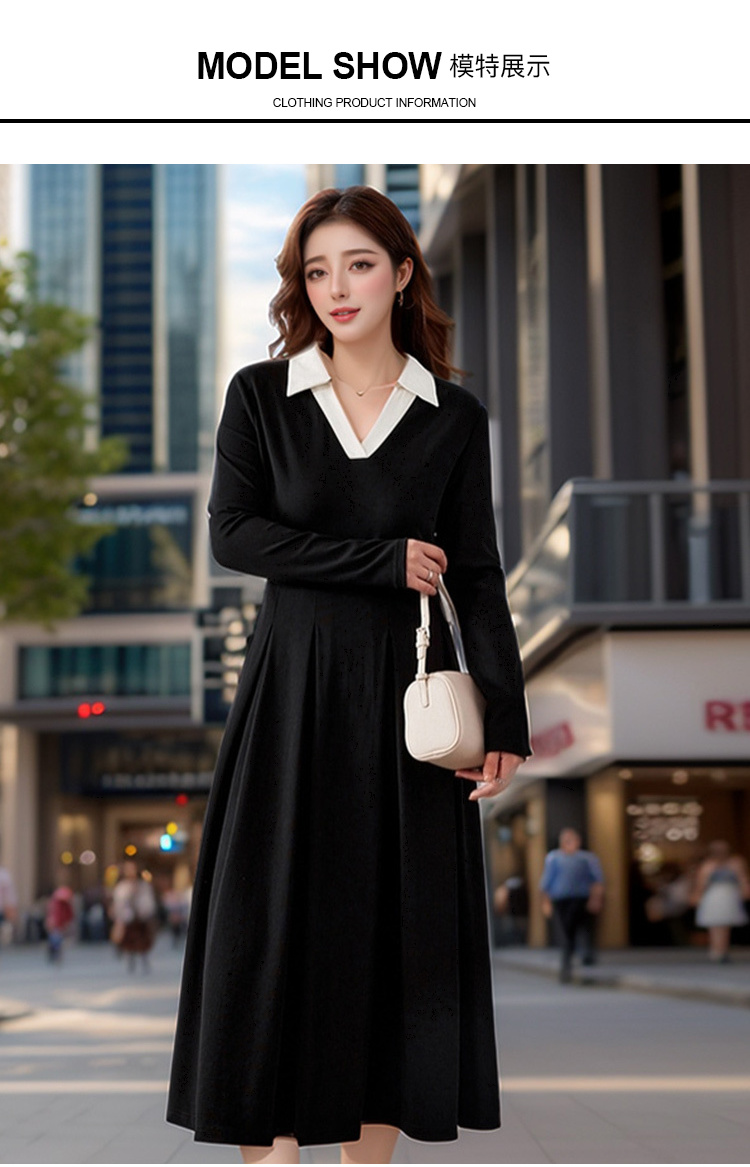 9/8奢姿大码女装2024秋季气质POLO领设计时尚裙子胖妹妹简约连衣裙9943891293