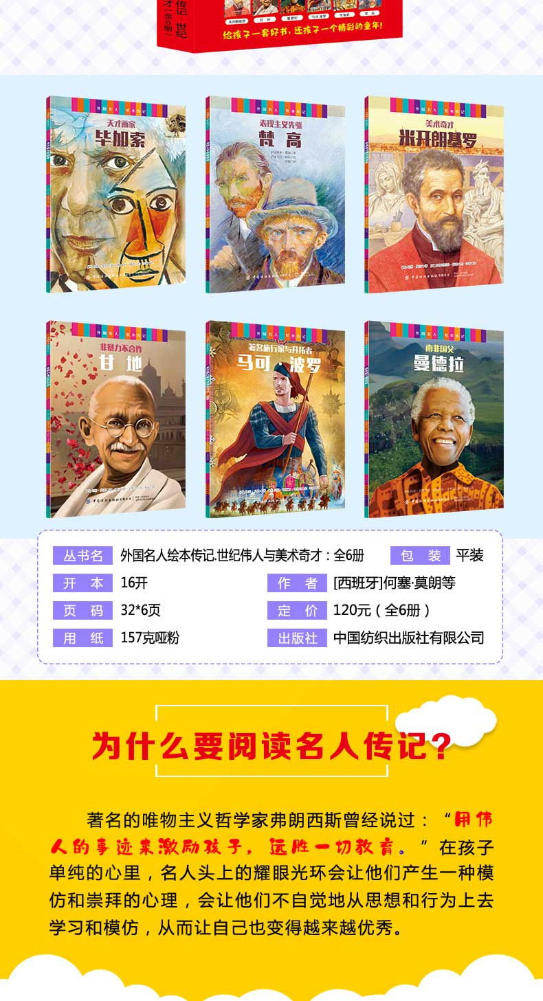 外国名人绘本传记.世纪伟人与美术奇才:全6册