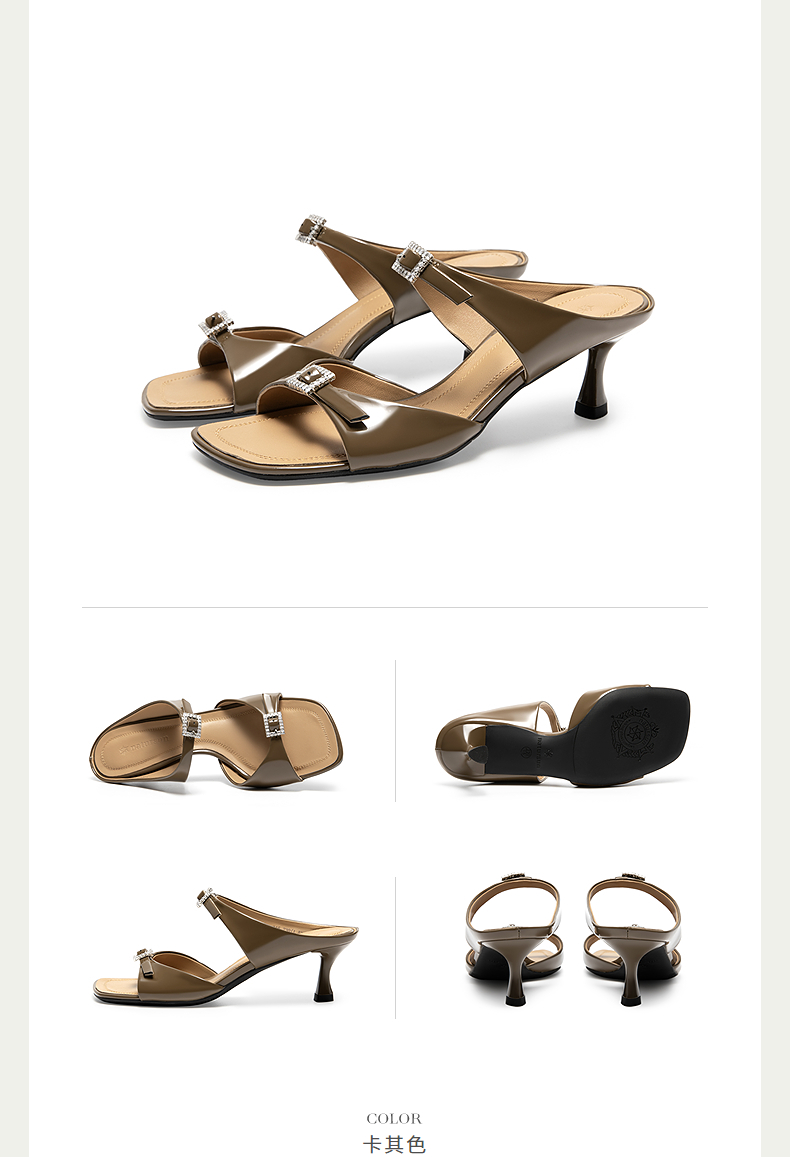 natursun法式高跟凉拖鞋时尚气质细跟后空凉鞋女外穿N25328215