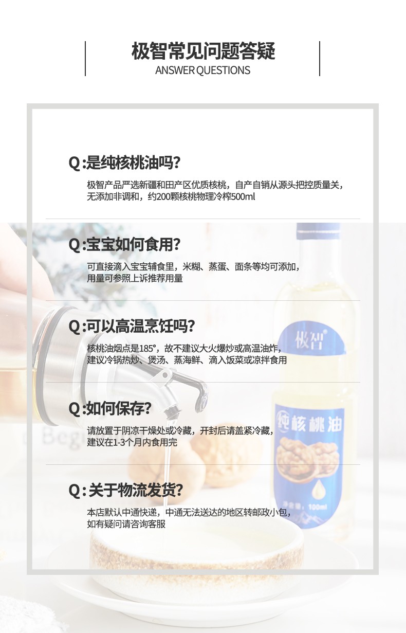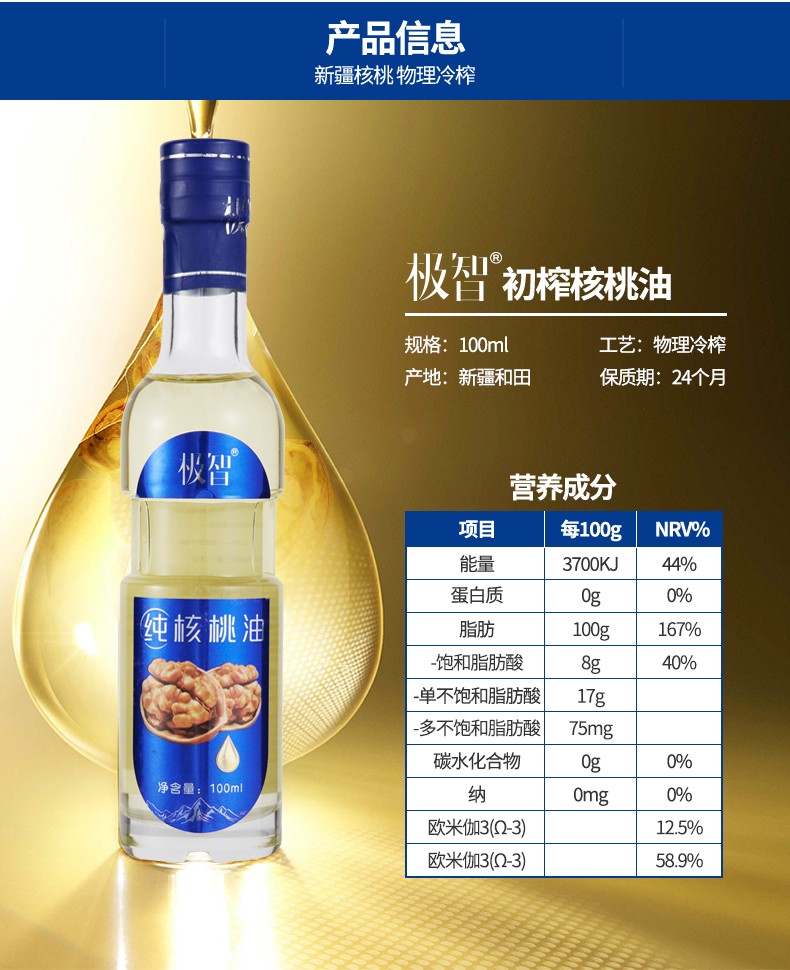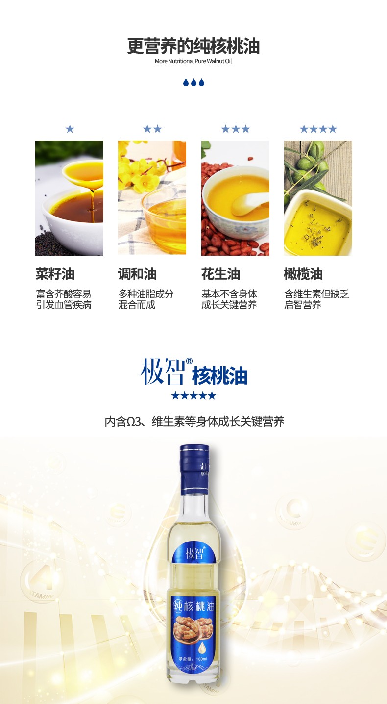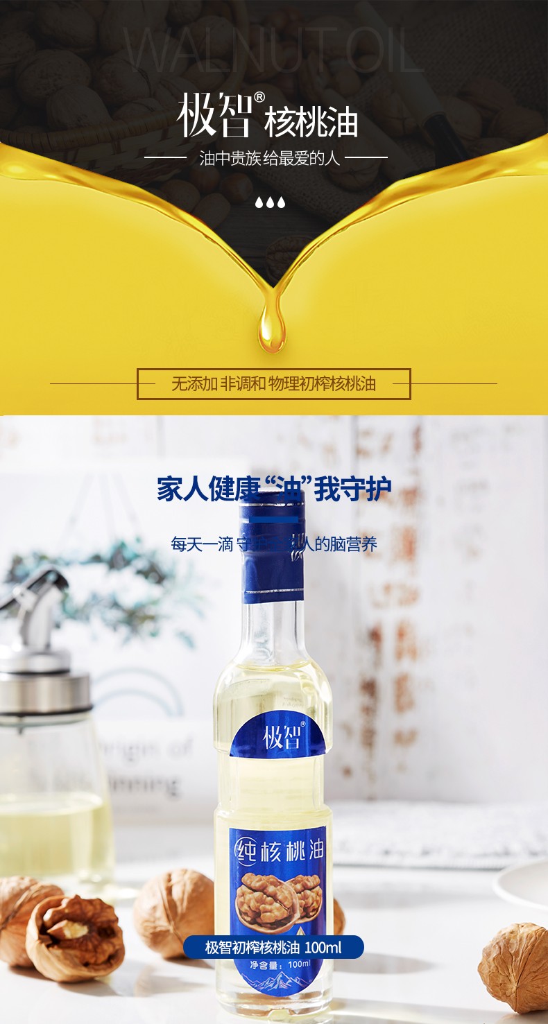 极智特级纯核桃油 高档款 500ml*2瓶 富含DHA 宝宝 食用油