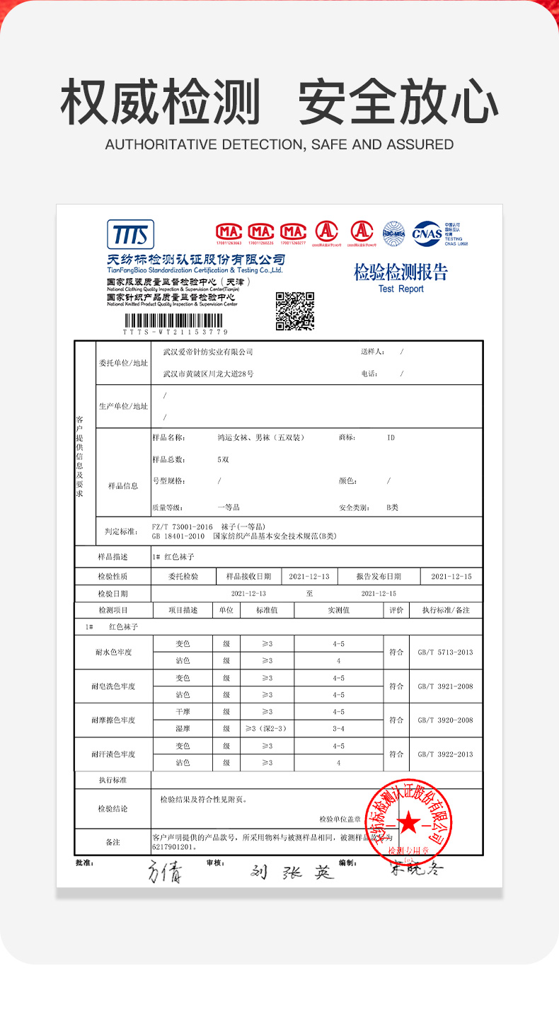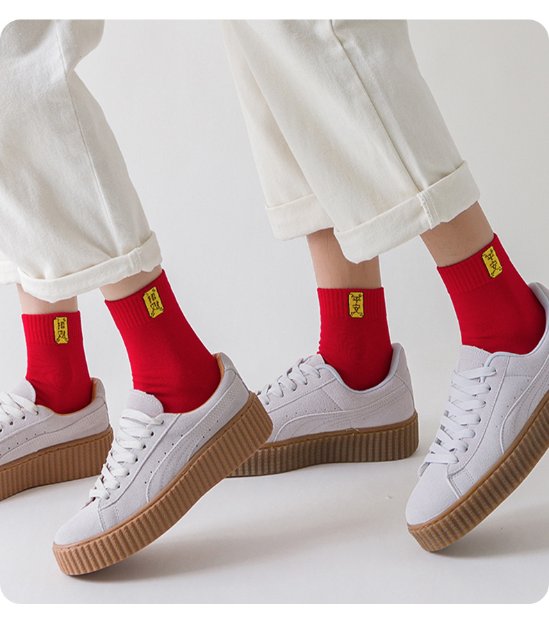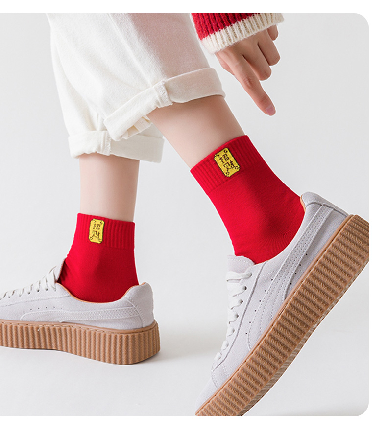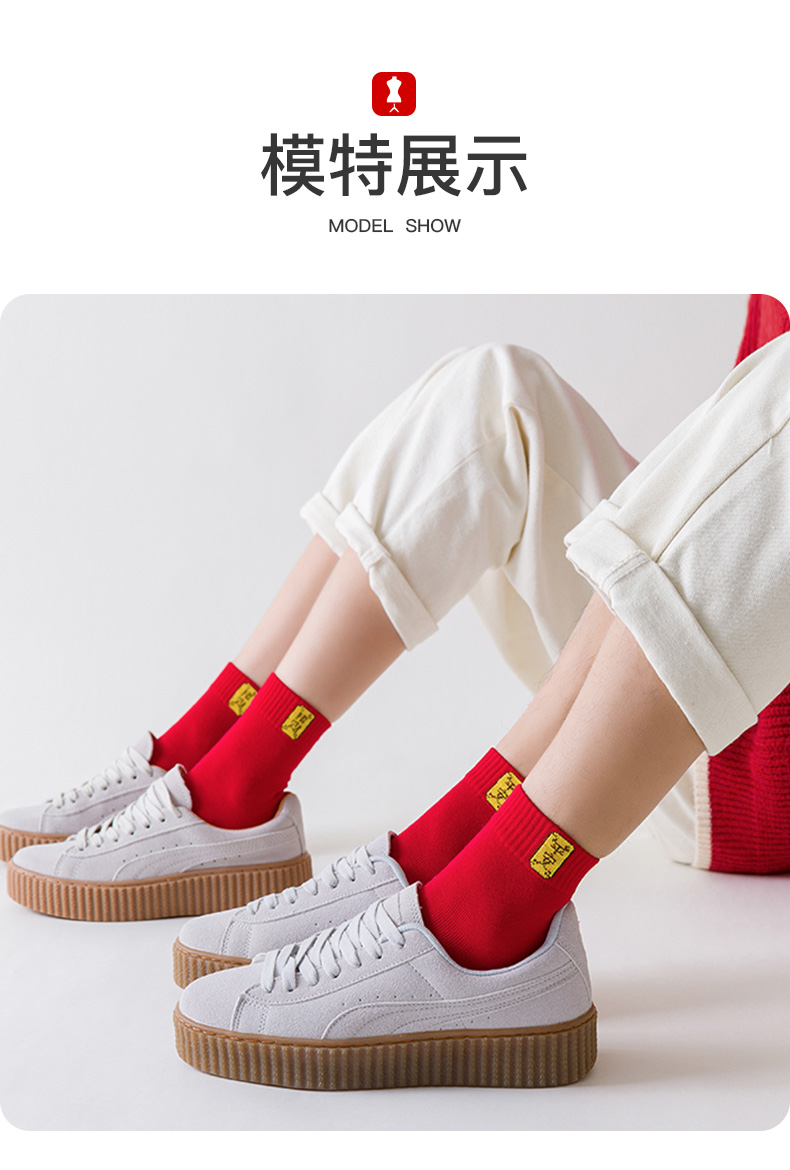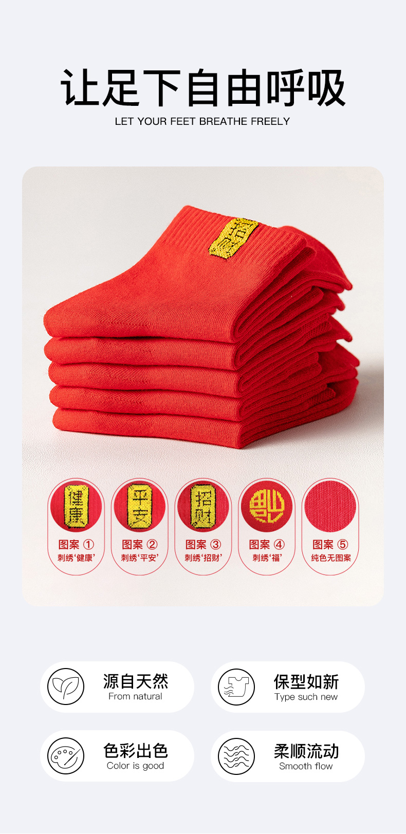 爱帝中筒棉袜本命年红袜子5双装(男/女款可选)