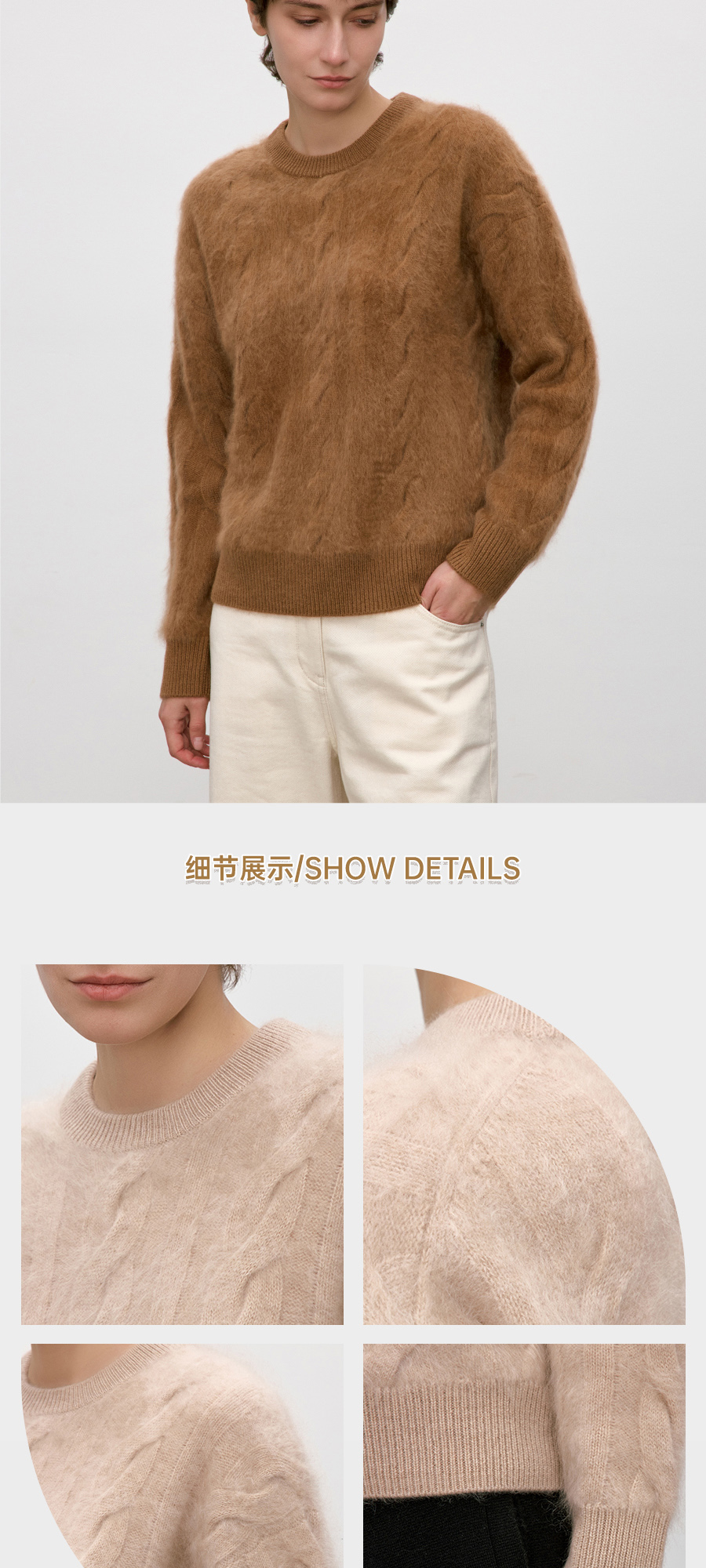 东黎 • 你本珍贵 拉毛女士秋季绞花圆领套衫 5380