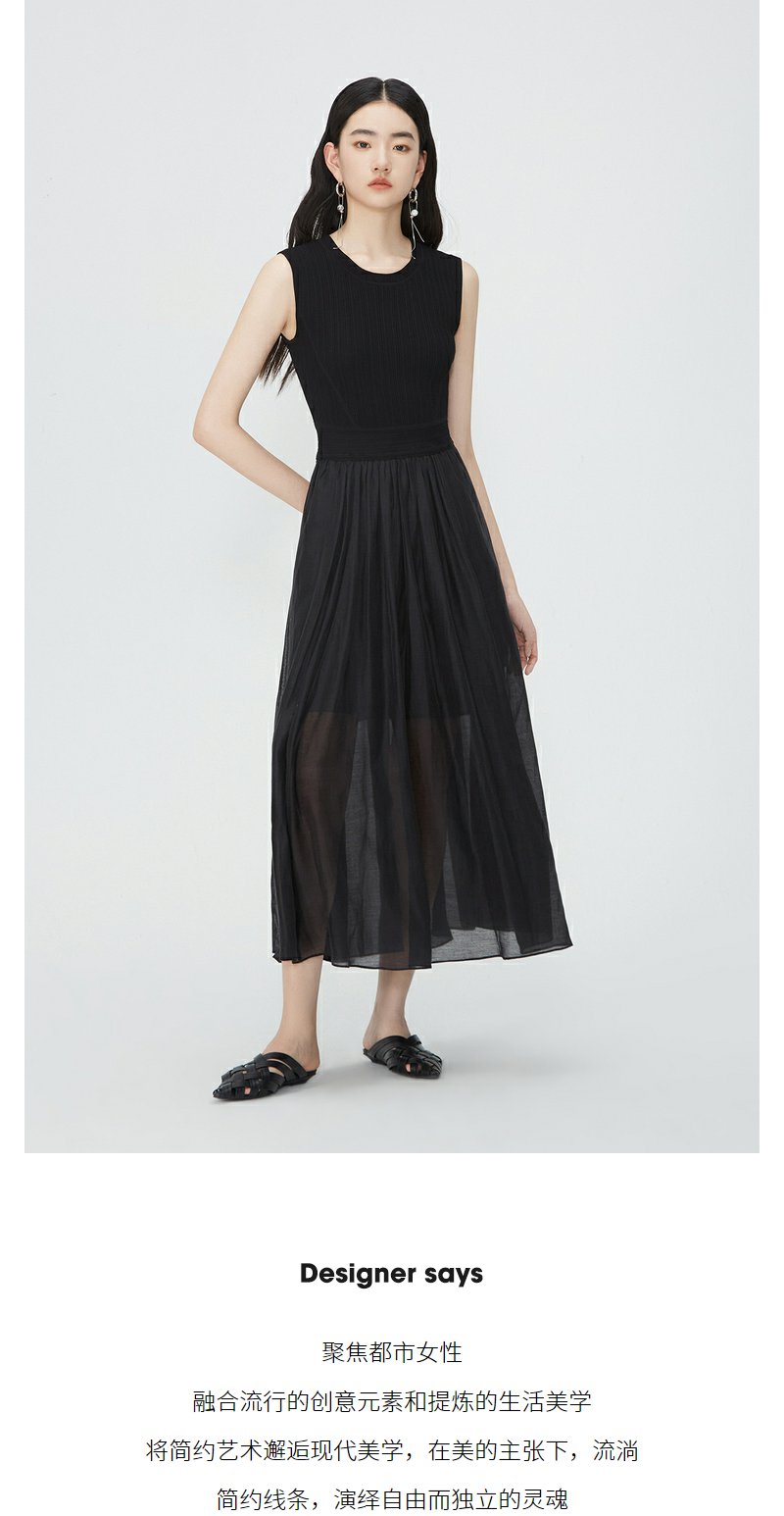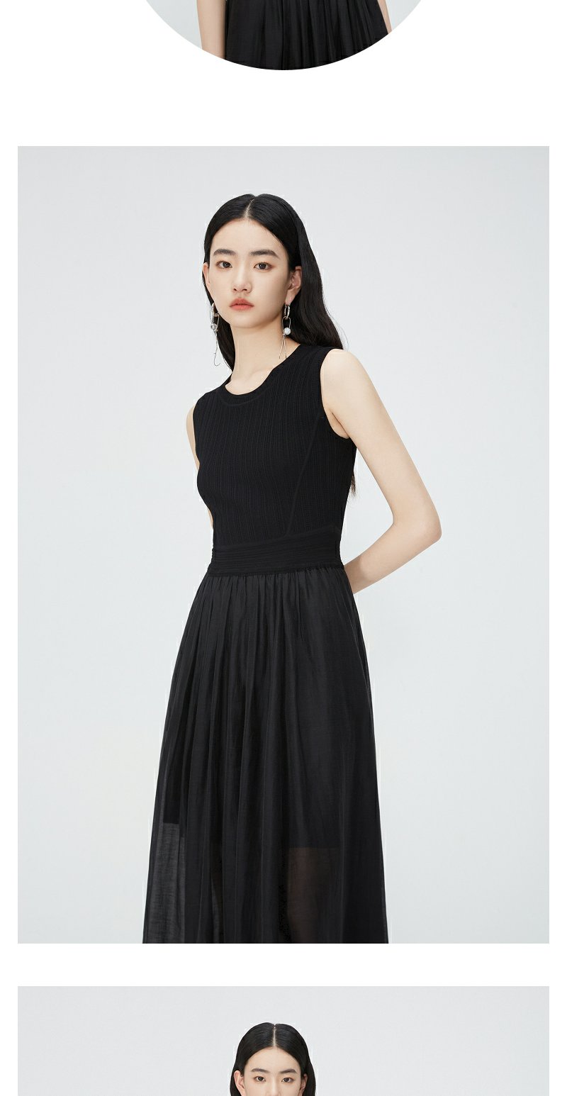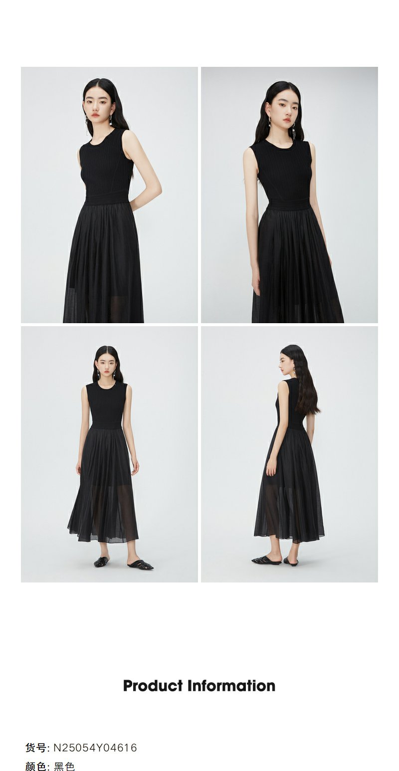 NEELLY纳俪商场同款夏新款圆领无袖连衣裙女修身针织背心拼接长裙N25054Y04616