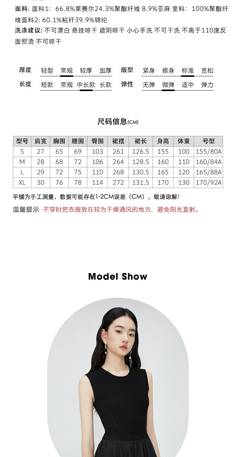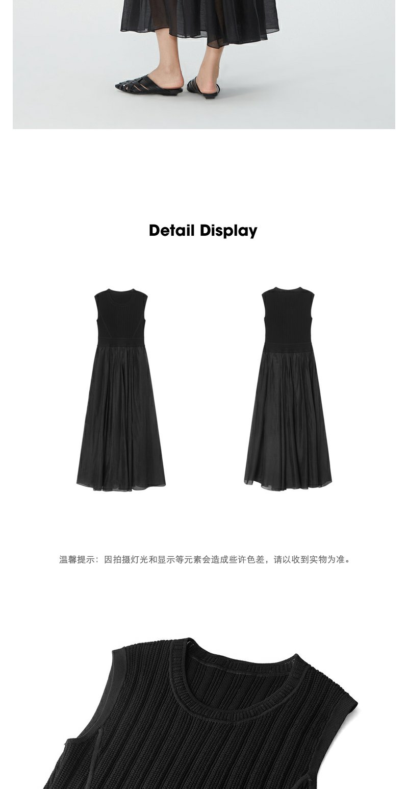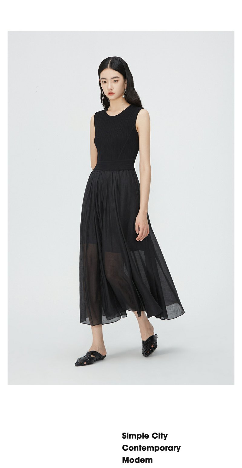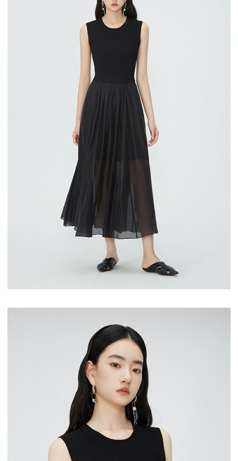 NEELLY纳俪商场同款夏新款圆领无袖连衣裙女修身针织背心拼接长裙N25054Y04616