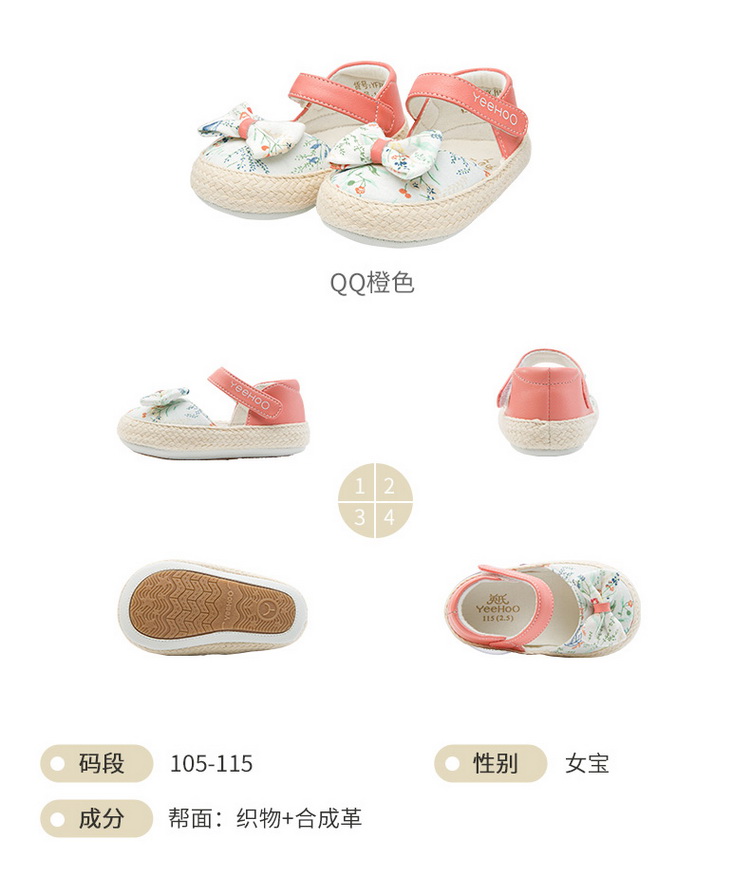 英氏婴儿鞋子蝴蝶结学步鞋春新款步前鞋YFXKJ1P080A YFXKJ1P081A