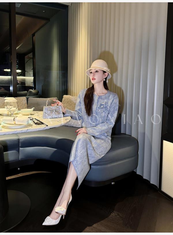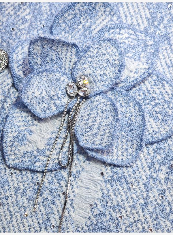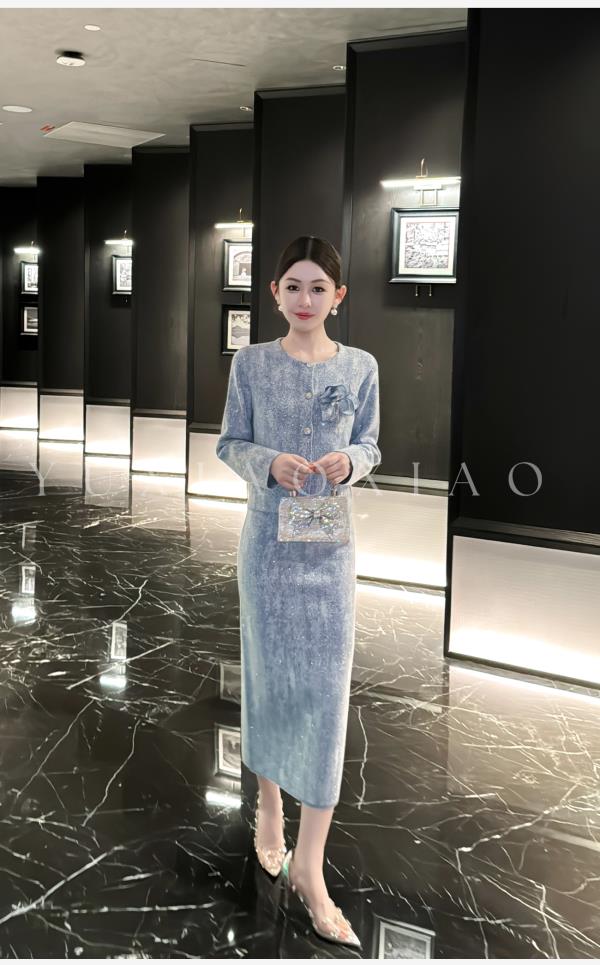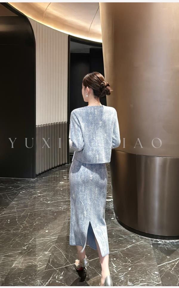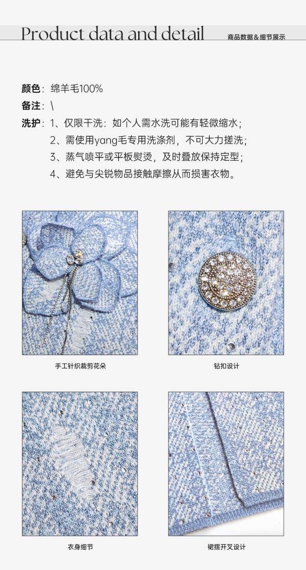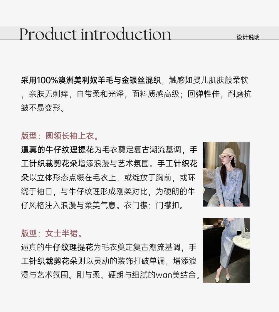 余潇潇【静谧宣言】100绵羊毛拼接手工立体花朵圆领上衣&长半裙套装