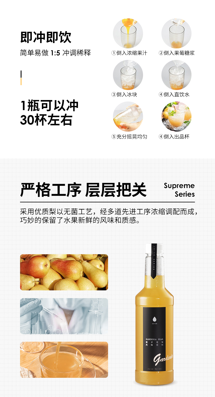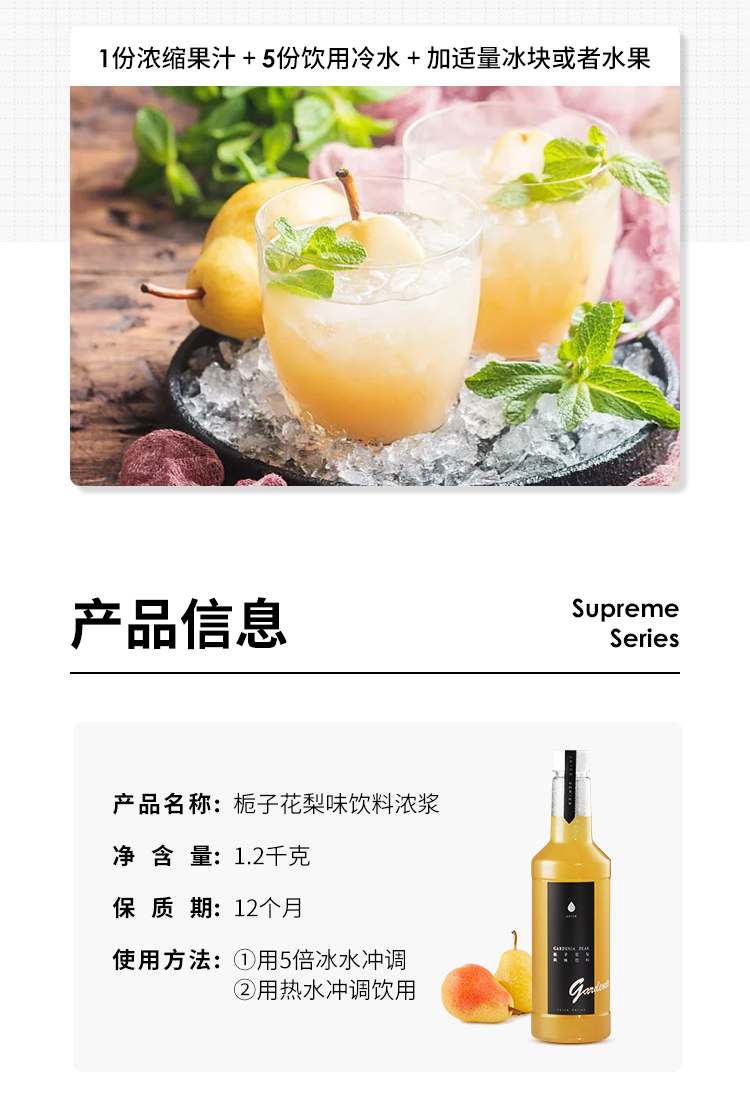 【爵世糖浆系列】栀子花梨风味饮料浓浆1.2KG/瓶 6瓶/箱