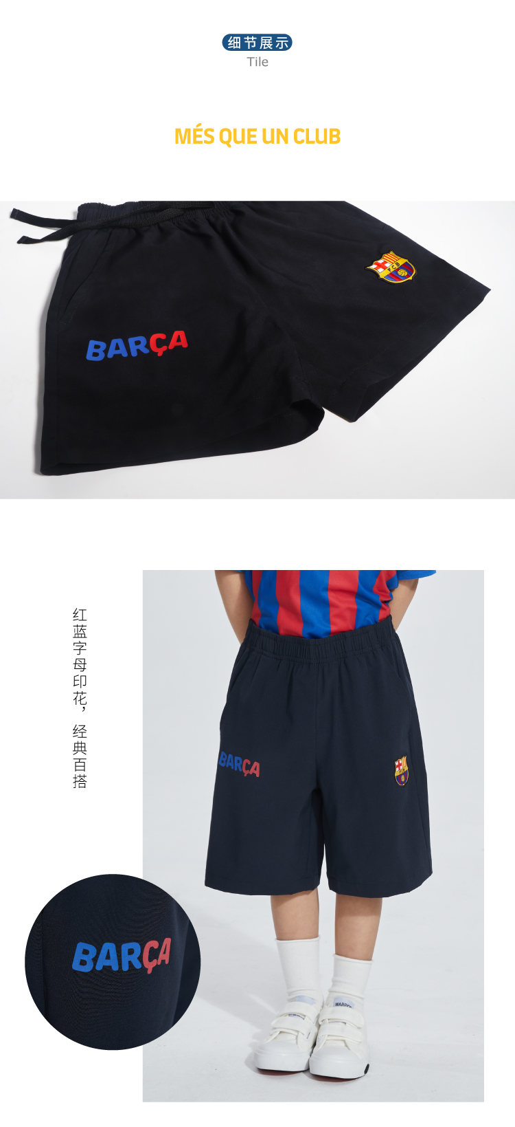 巴塞罗那俱乐部官方商品 | 巴萨队徽深蓝童装短裤夏款