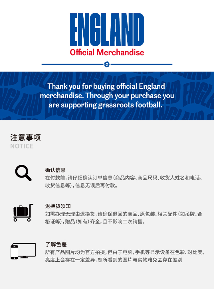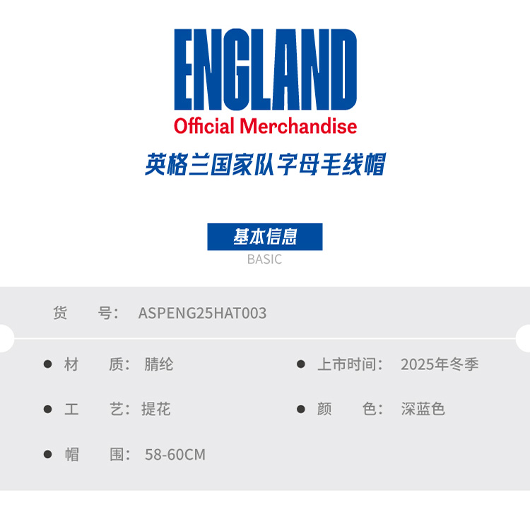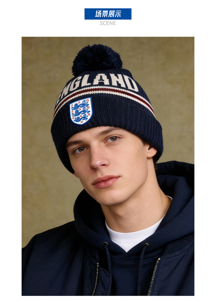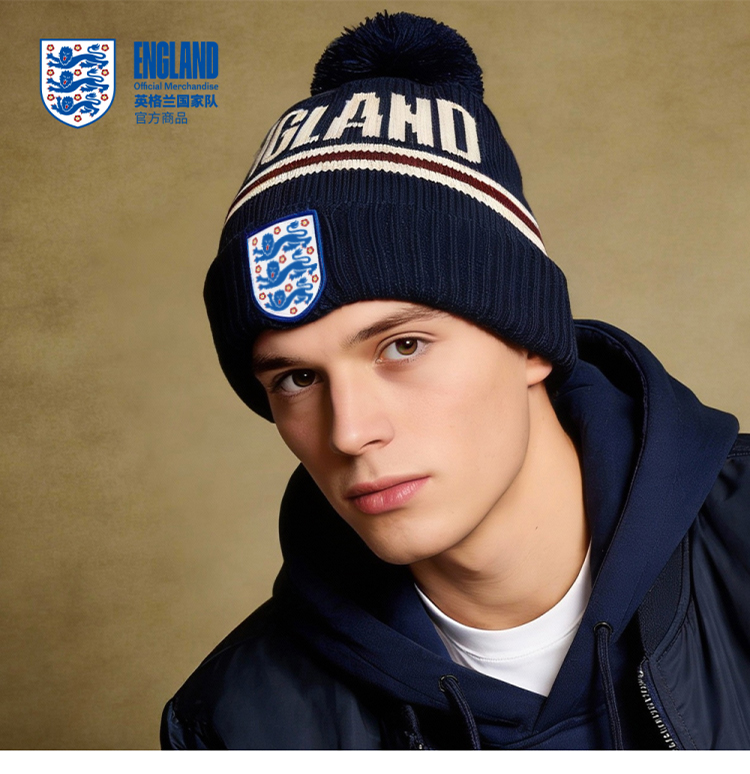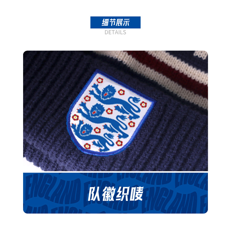 【官方正版】英格兰国 家队 | 字母毛线帽蓝白色复古针织帽