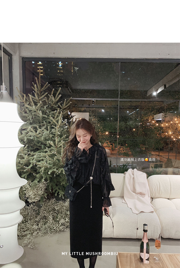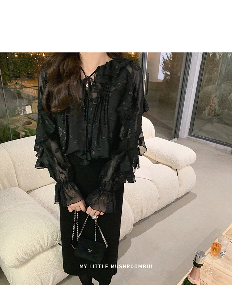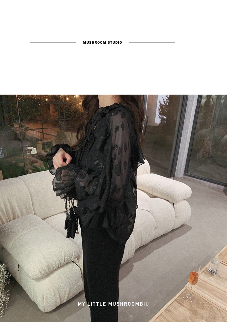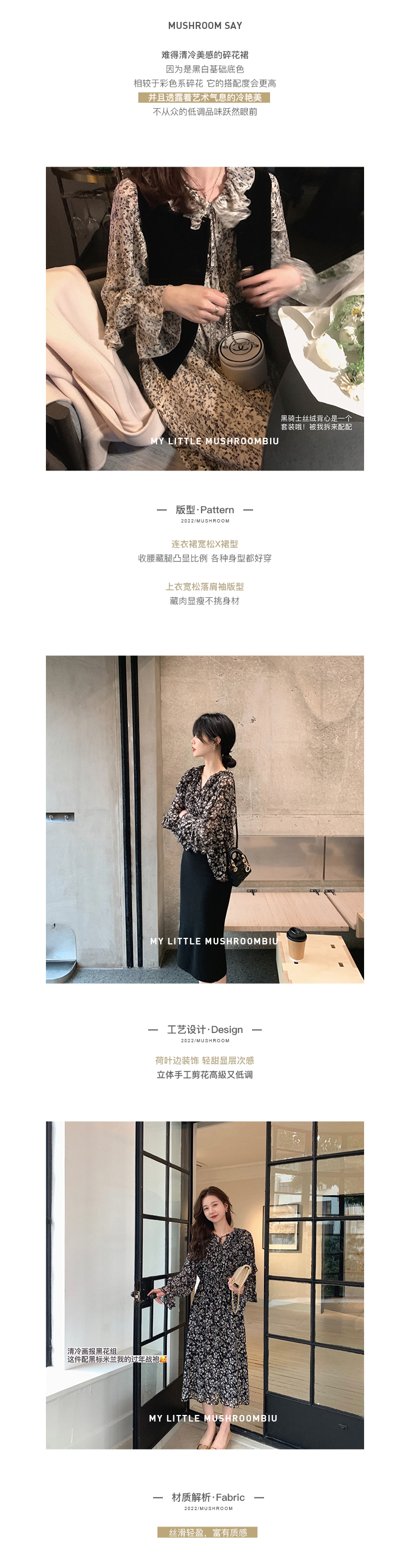 金蘑菇菇【清冷画报 黑花组】上衣/连衣裙!真丝质感烧花!