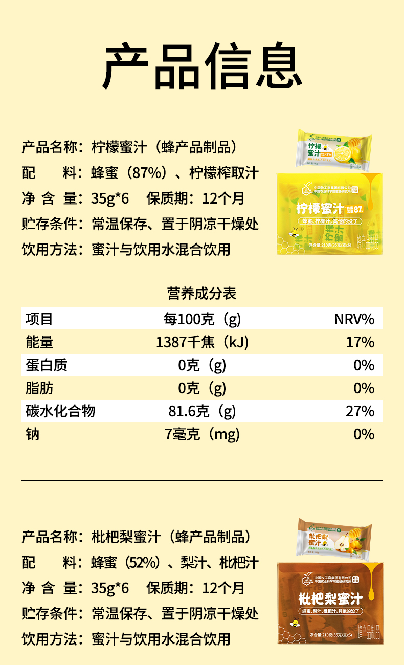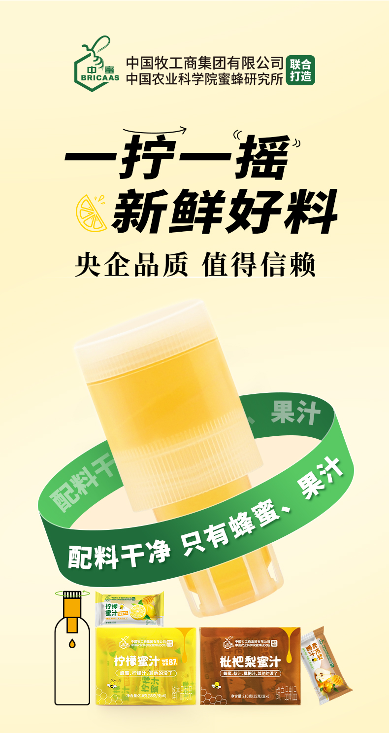 中蜜 枇杷梨蜜汁 分离式蜂蜜枇杷梨 通用型瓶盖 真蜂蜜 真果汁 210g/盒(35g/支*6)