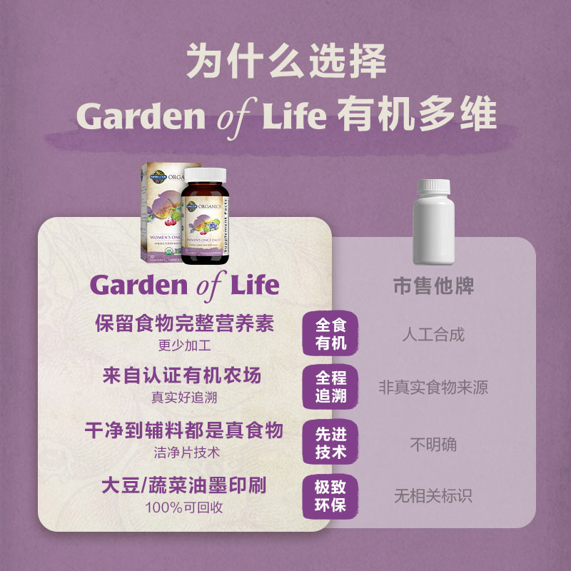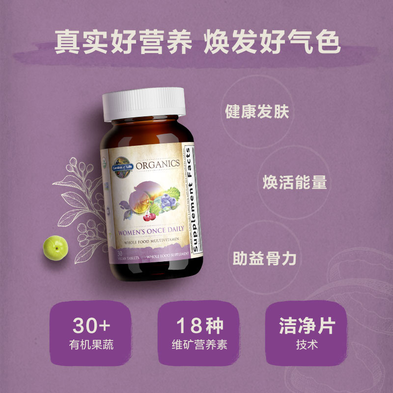 Garden of Life生命花园 女士天然有机多种维生素 30粒/瓶