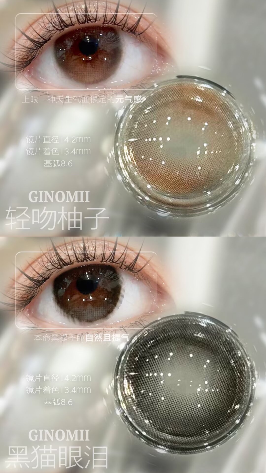 Ginomii半年抛 黑猫眼泪/轻吻柚子 14.2mm 黑/棕 心机款