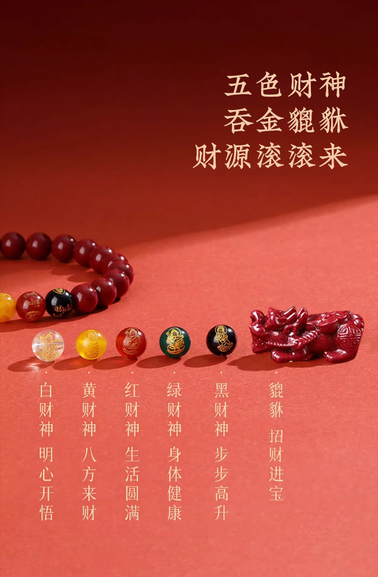【新年到,财运到】BAOFANDI 蛇年朱砂手串 五路财神 本命年 招财 接好运手串