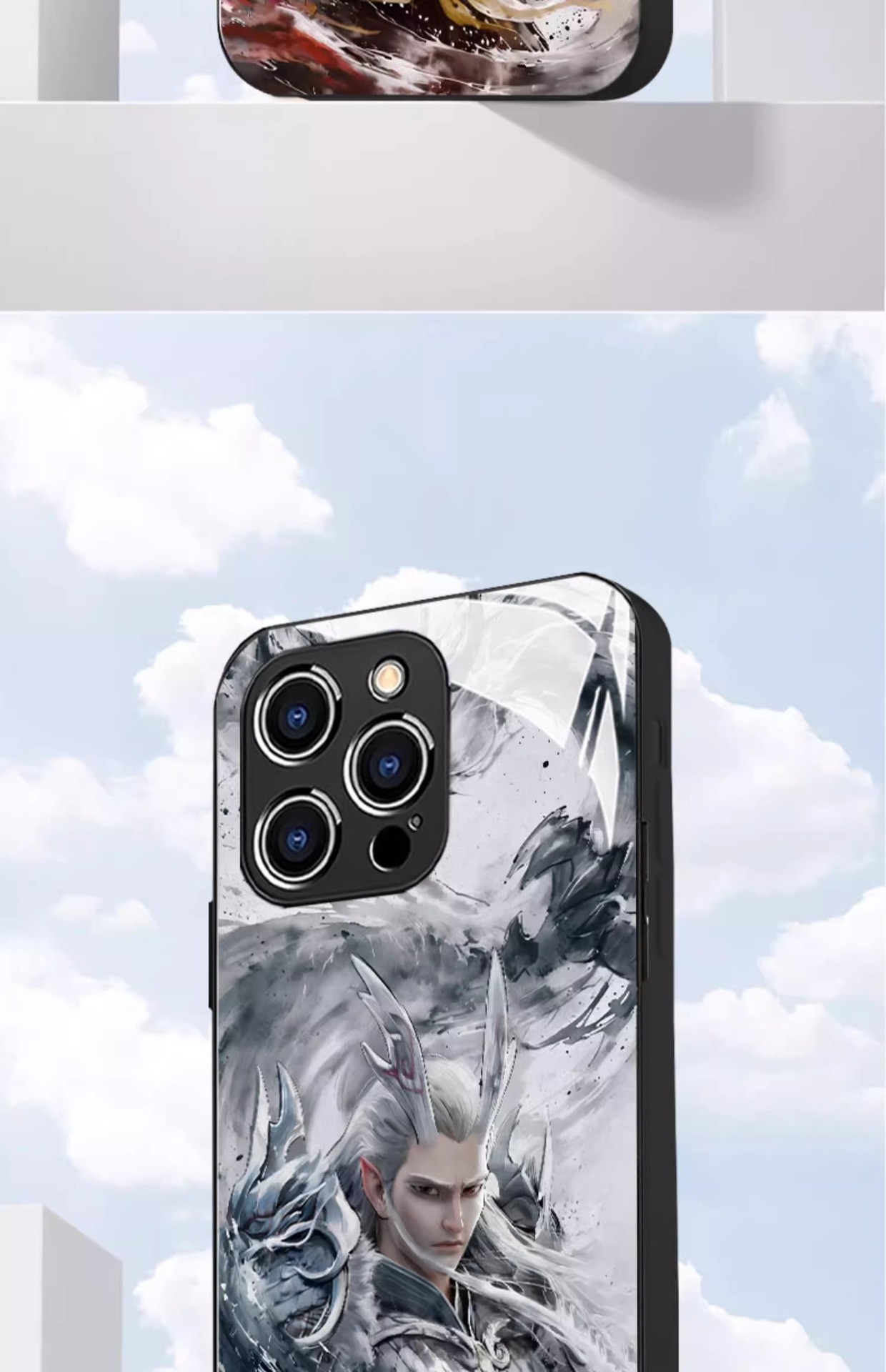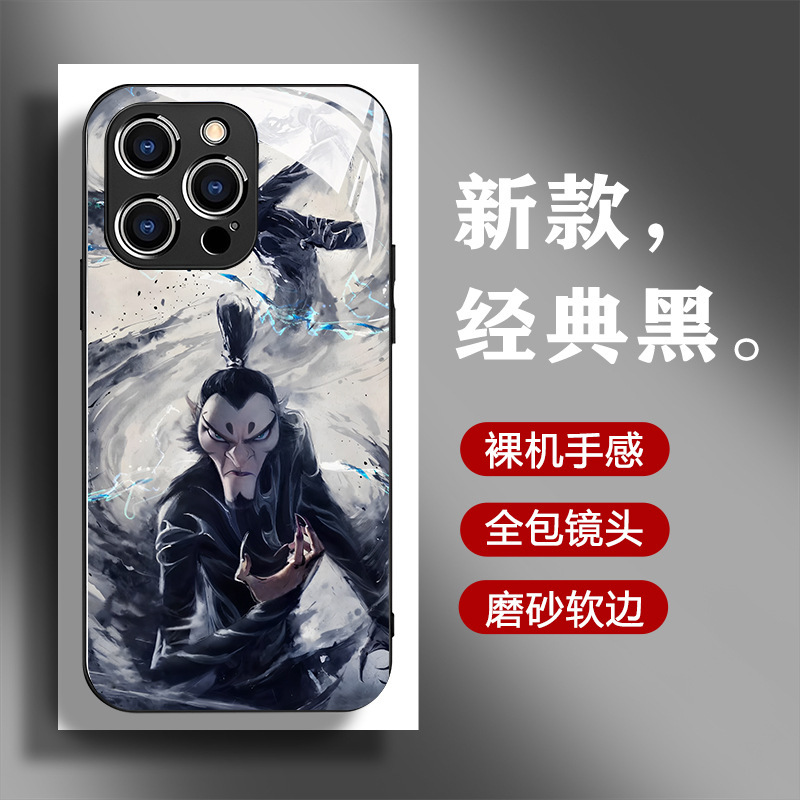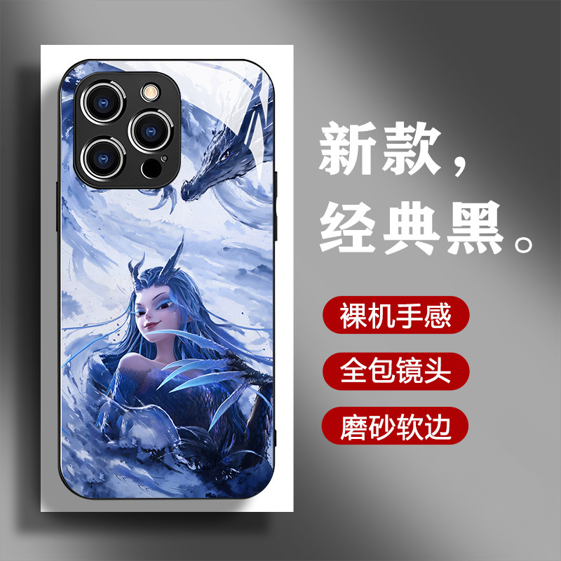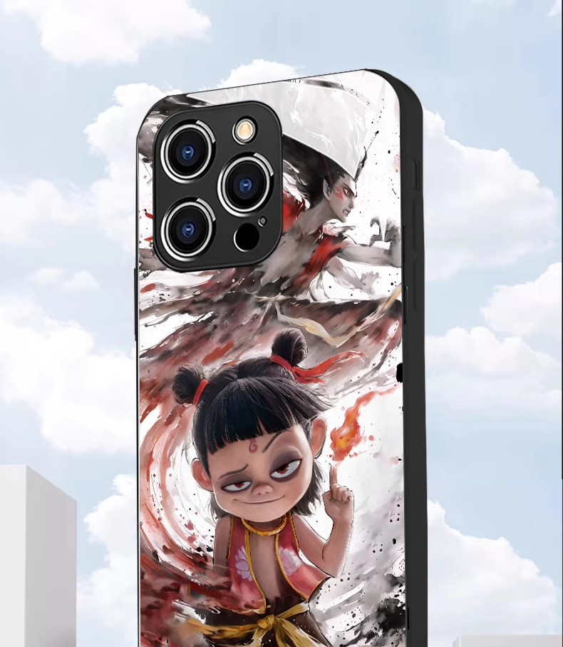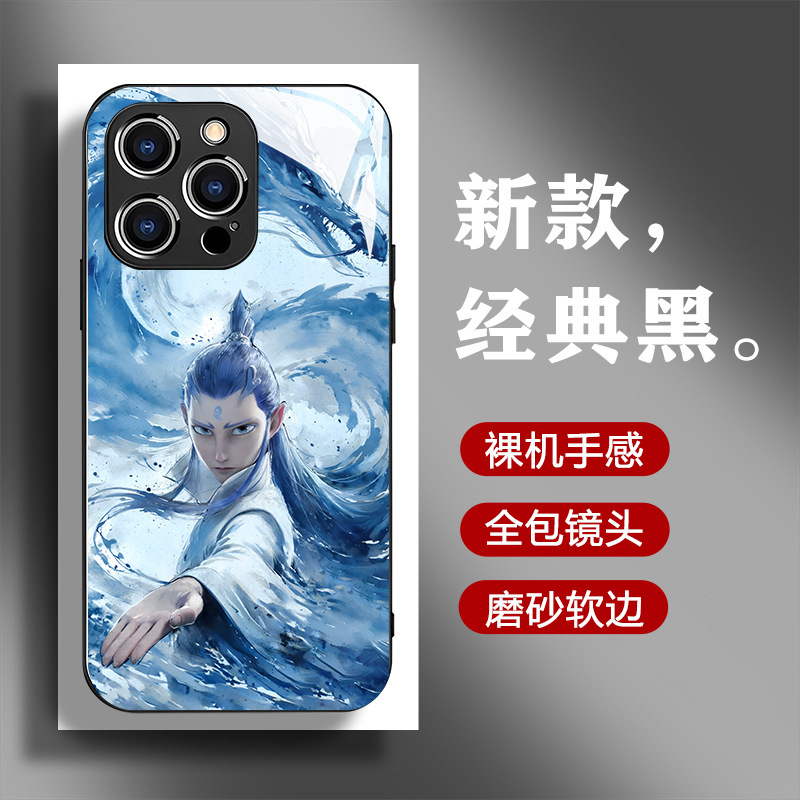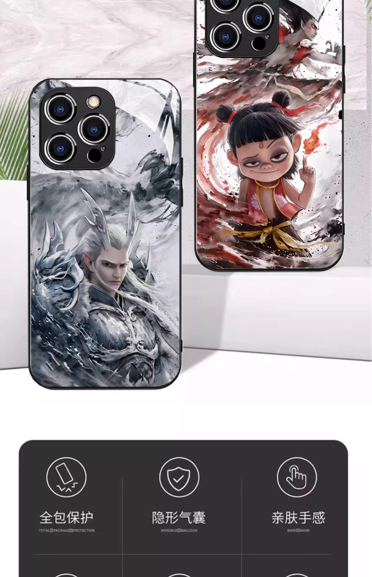 【哪咤苹果手机玻璃壳】手机壳苹果16之魔童闹海iPhone15promax敖丙卡通壳14pm玻璃13。ry