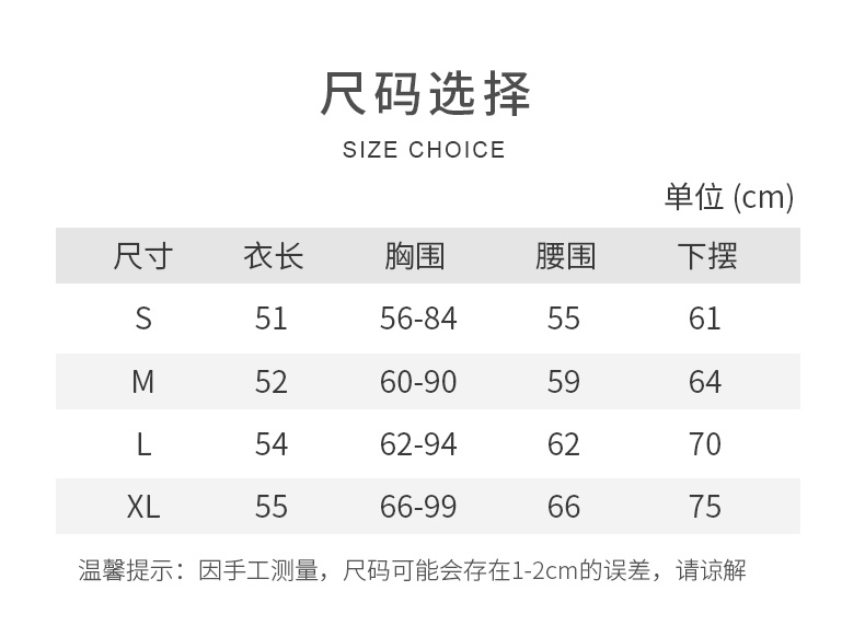 由于个人穿衣习惯不同,尺码建议仅供参考。