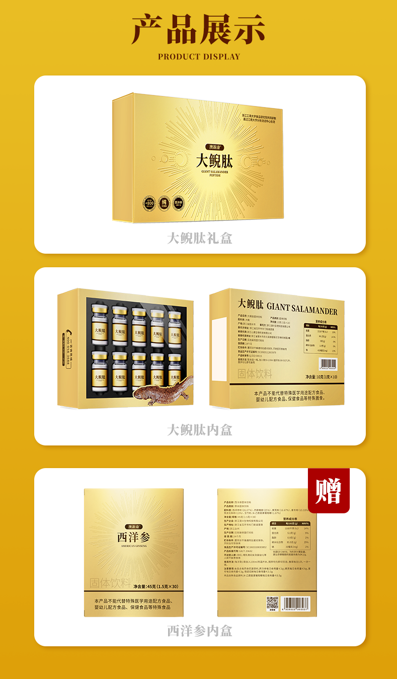 ⁵清仓299元/4盒【大鲵肽礼盒】18种氨基酸+蛙皮素 6瓶/盒 YY05-QTT-AXK