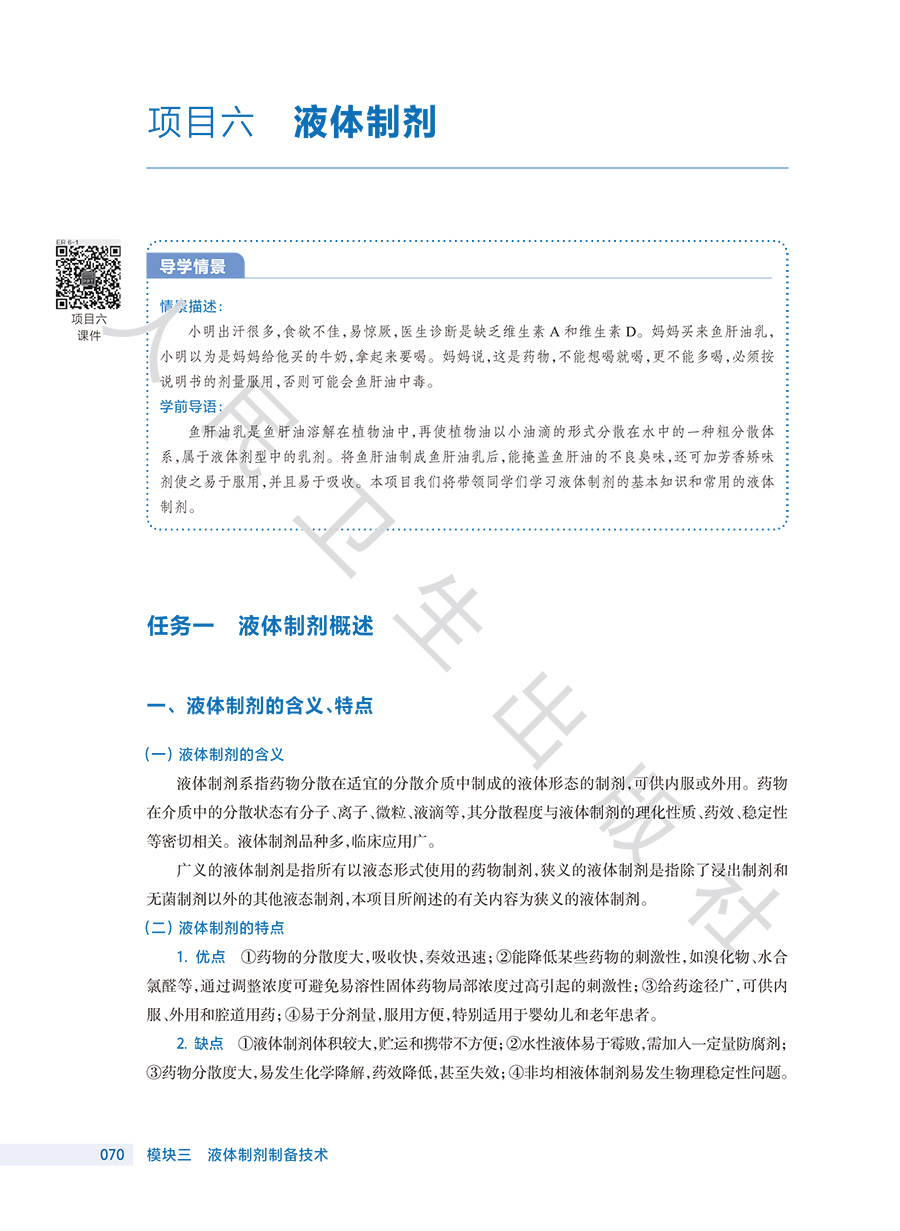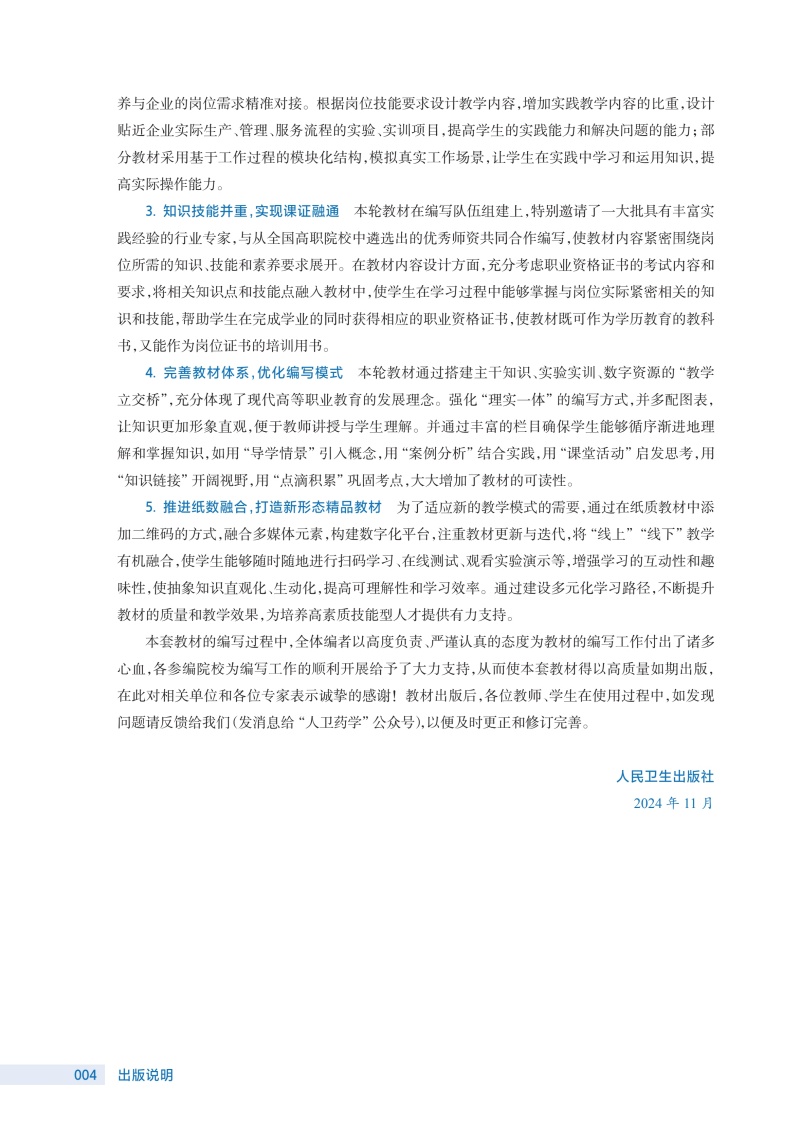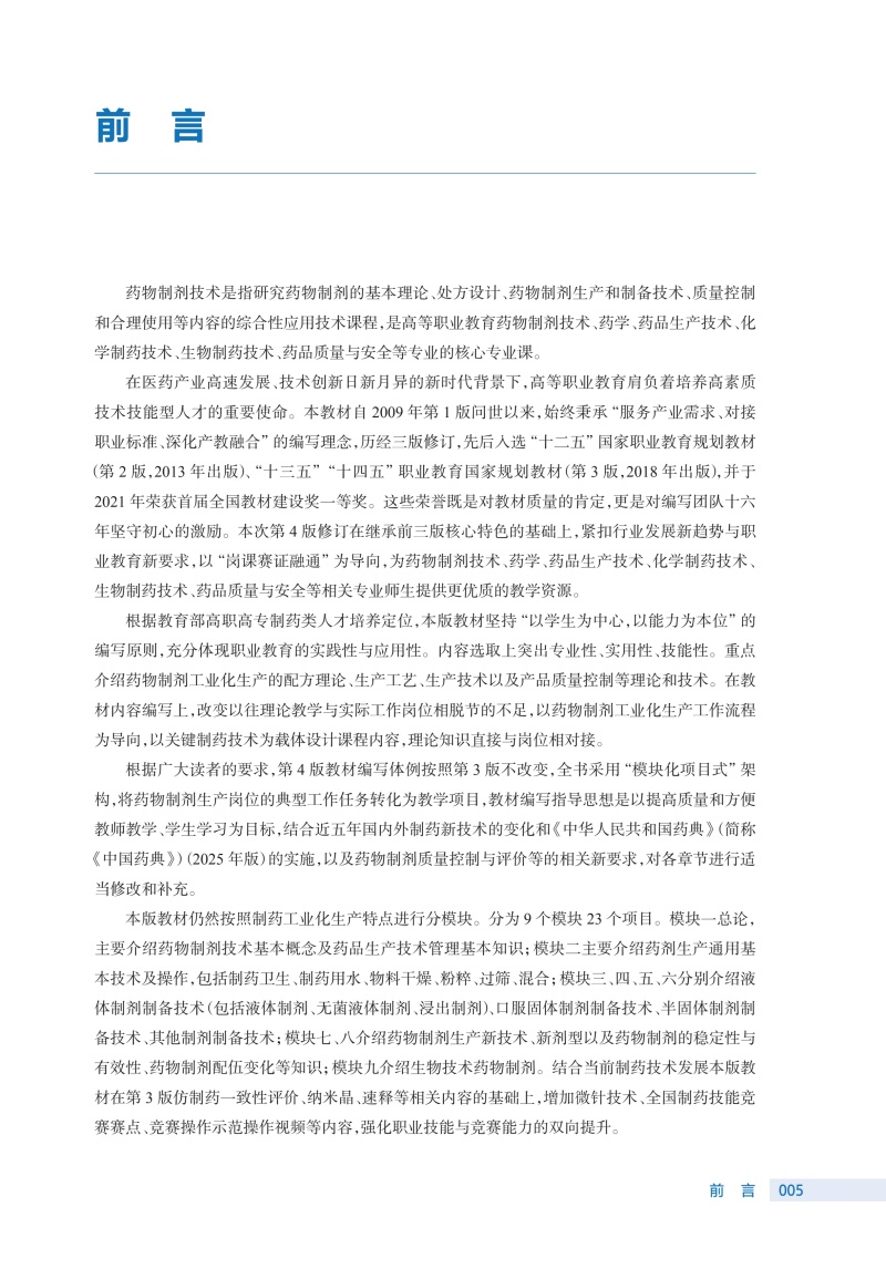 1.在内容选取上突出专业性、实用性、技能性。重点介绍药物制剂工业化生产的配方理论、生产工艺、生产技术以及产品质量控制等理论和技术。2.在教材内容编写上,改变以往理论教学与实际工作岗位相脱节的不足,以药物制剂工业化生产工作流程为导向,以关键制药技术为载体设计课程内容,理论知识直接与岗位相对接。3.结合近五年国内外制药新技术的变化和我国2025版《中国药典》实施,以及药物制剂质量控制与评价等的相关新要求,对各章节进行适当修改和补充。