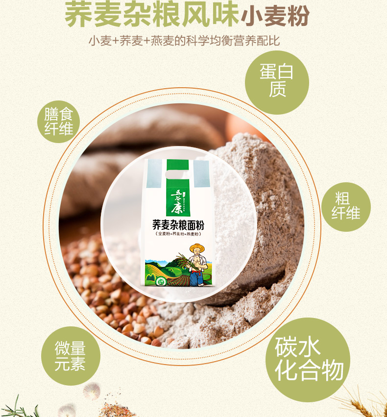荞麦杂粮面粉750g 全麦粉+燕麦粉+荞麦粉