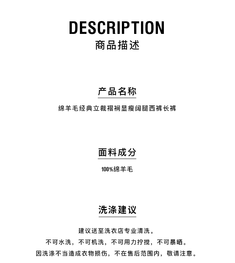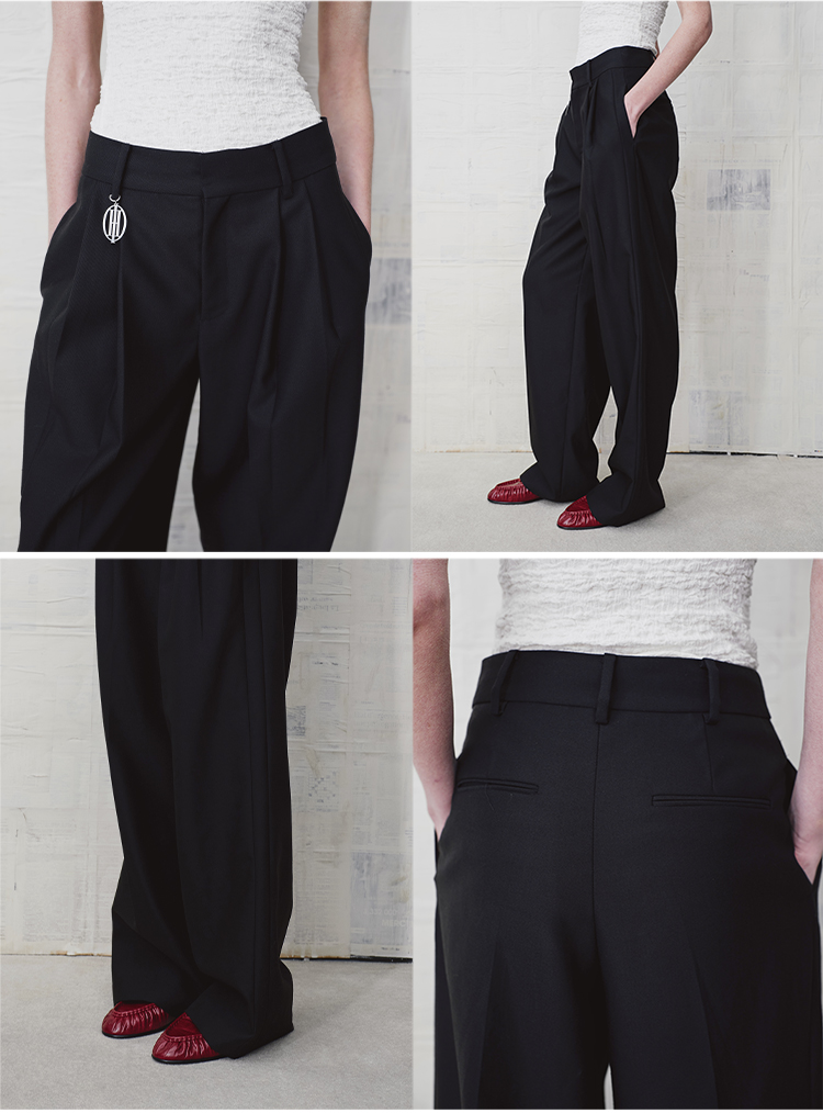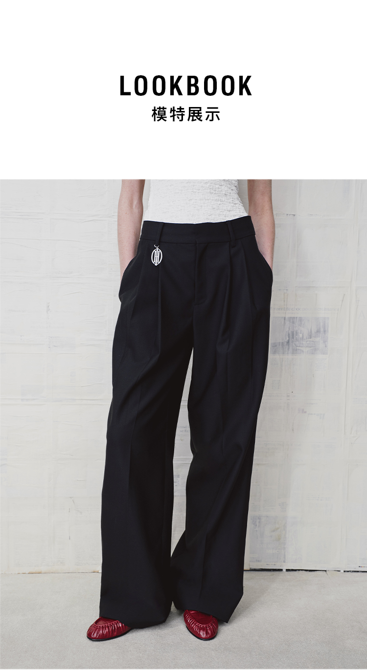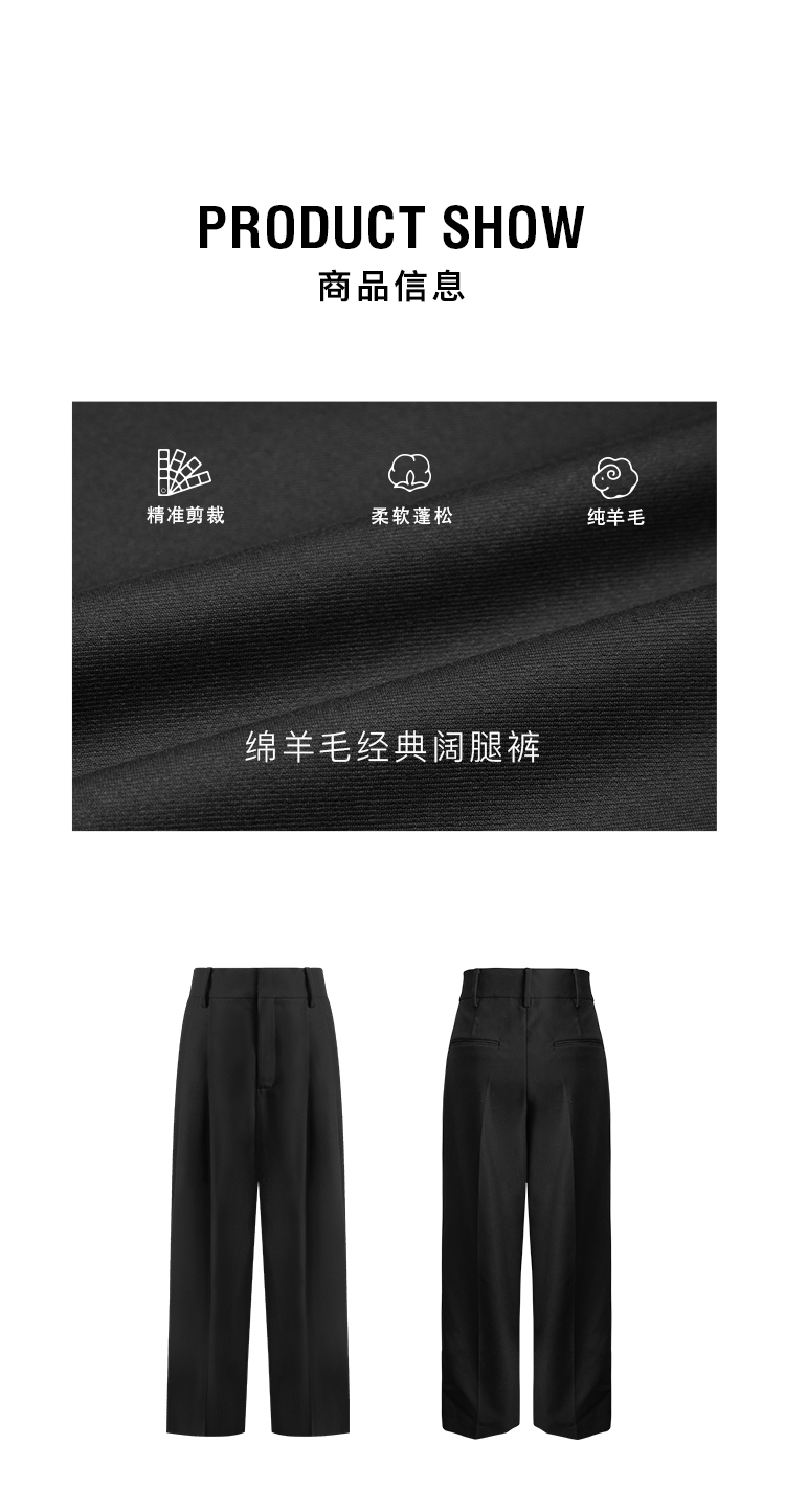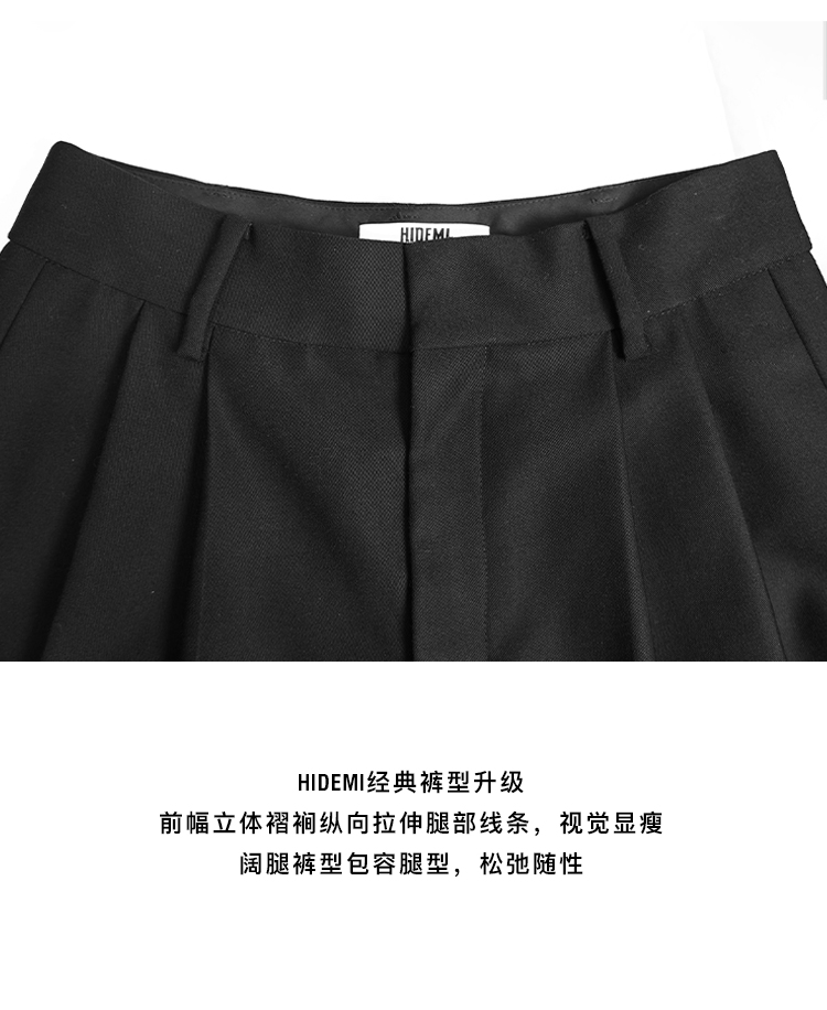 HIDEMI 绵羊毛经典立裁褶裥显瘦阔腿西裤长裤