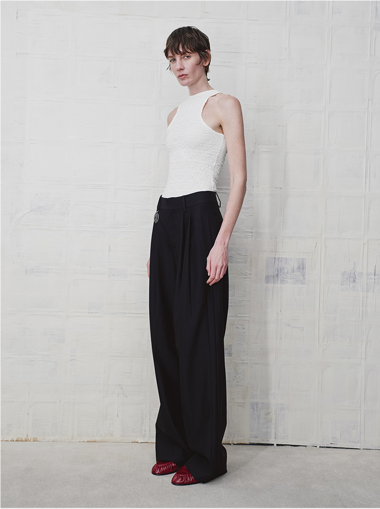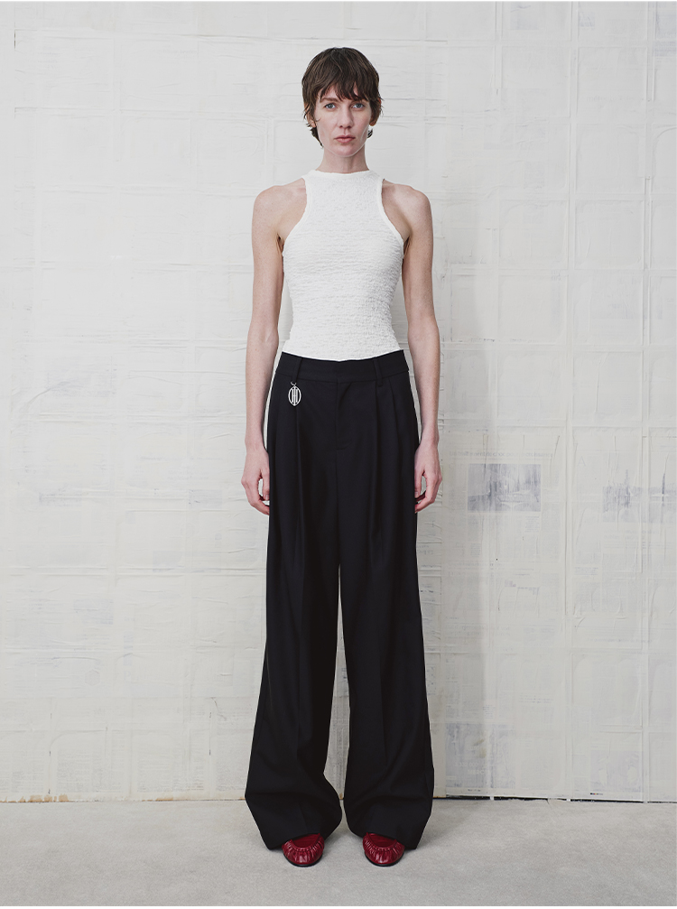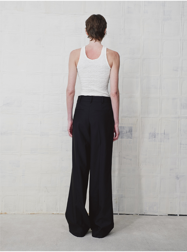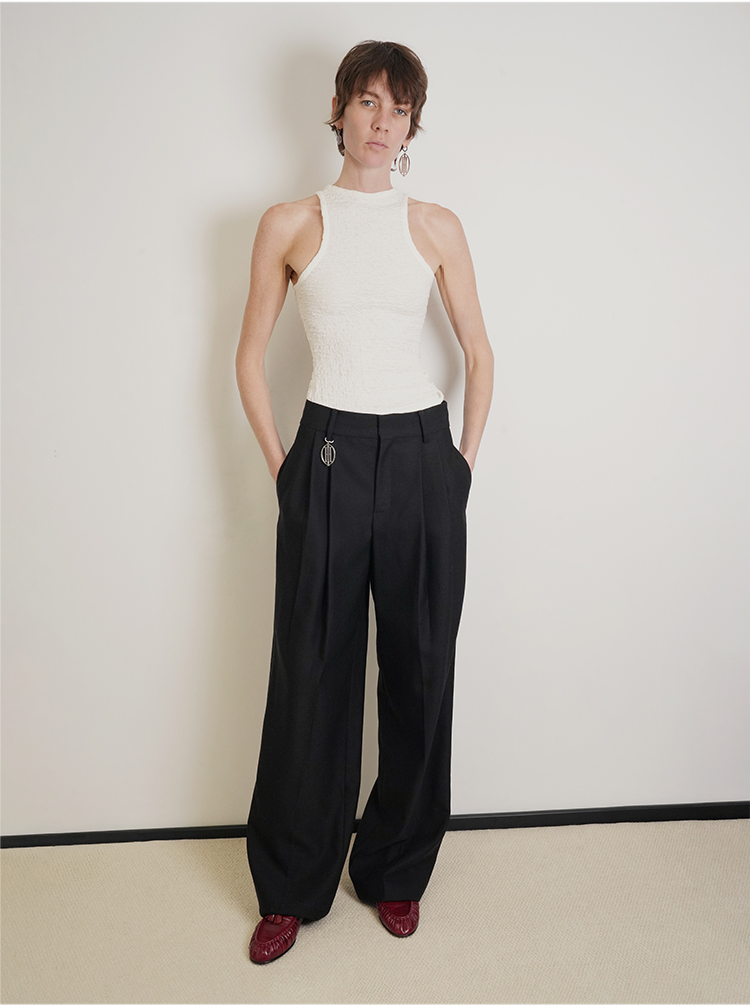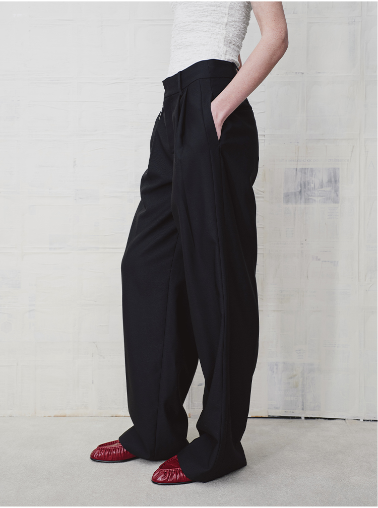 HIDEMI 绵羊毛经典立裁褶裥显瘦阔腿西裤长裤