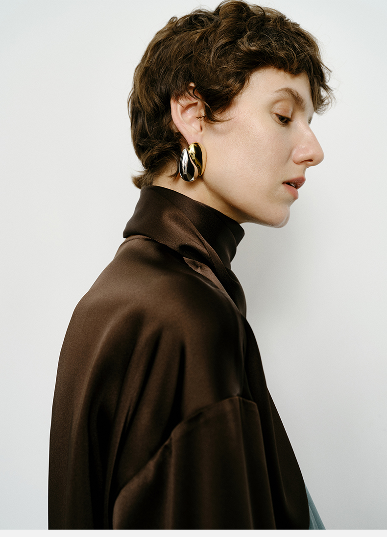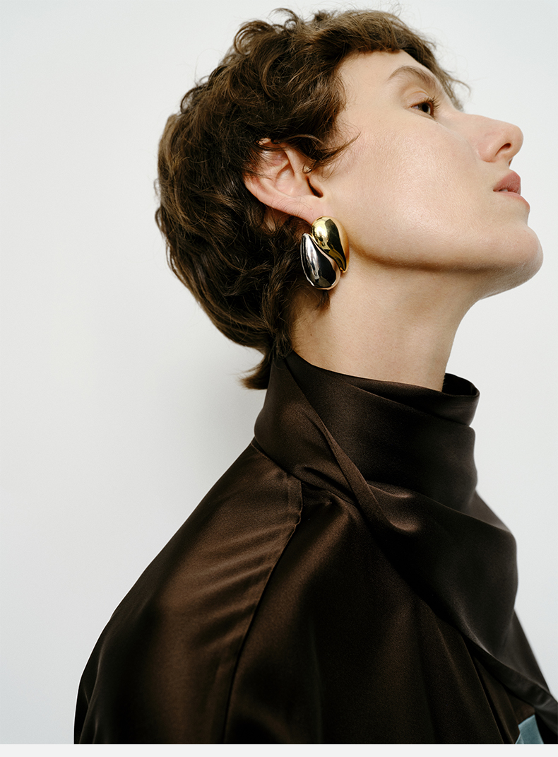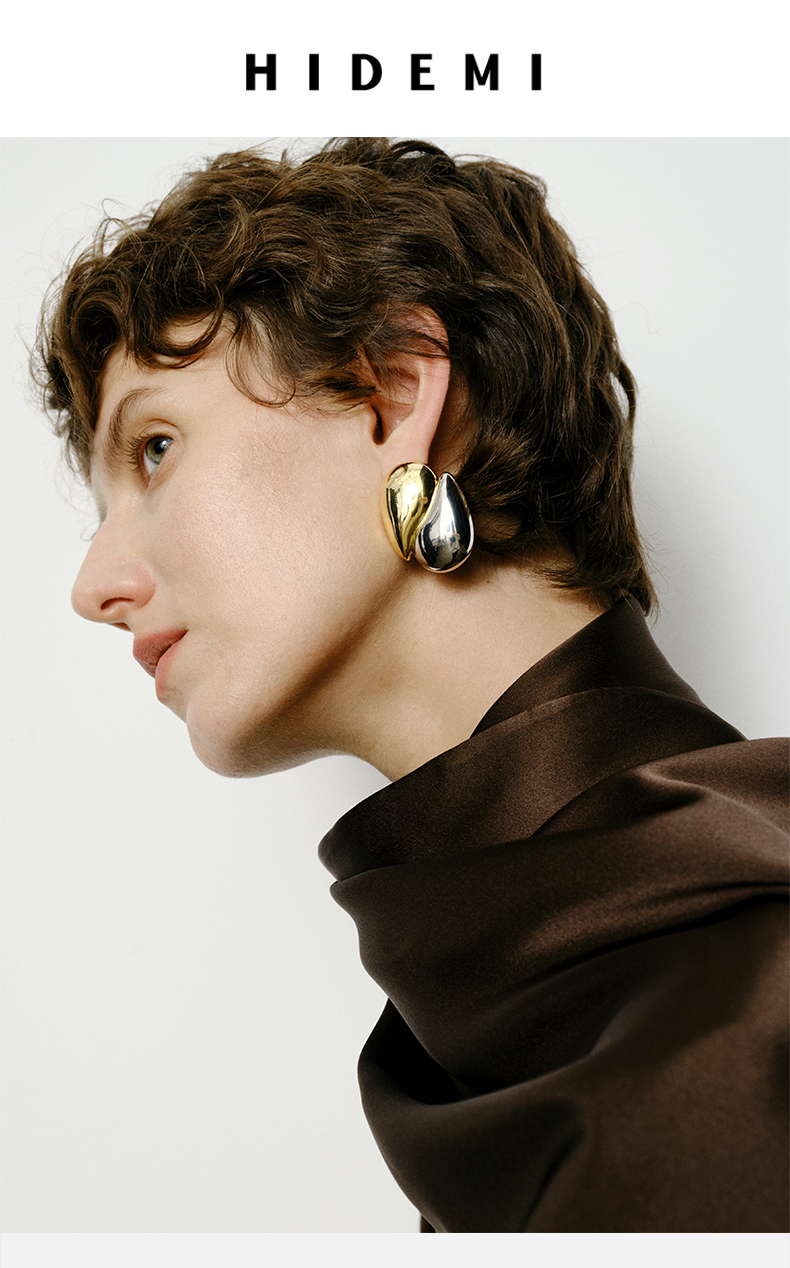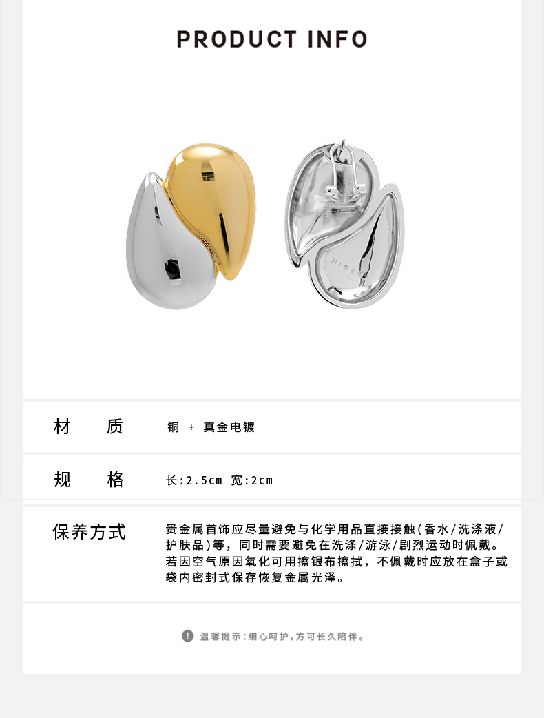 HIDEMI 【papi酱同款】流线型设计感金银拼色椭圆形耳钉