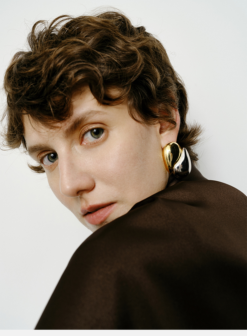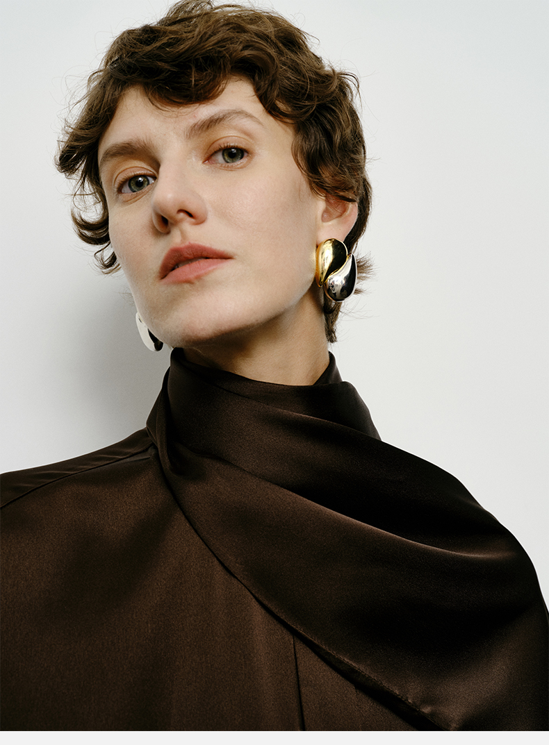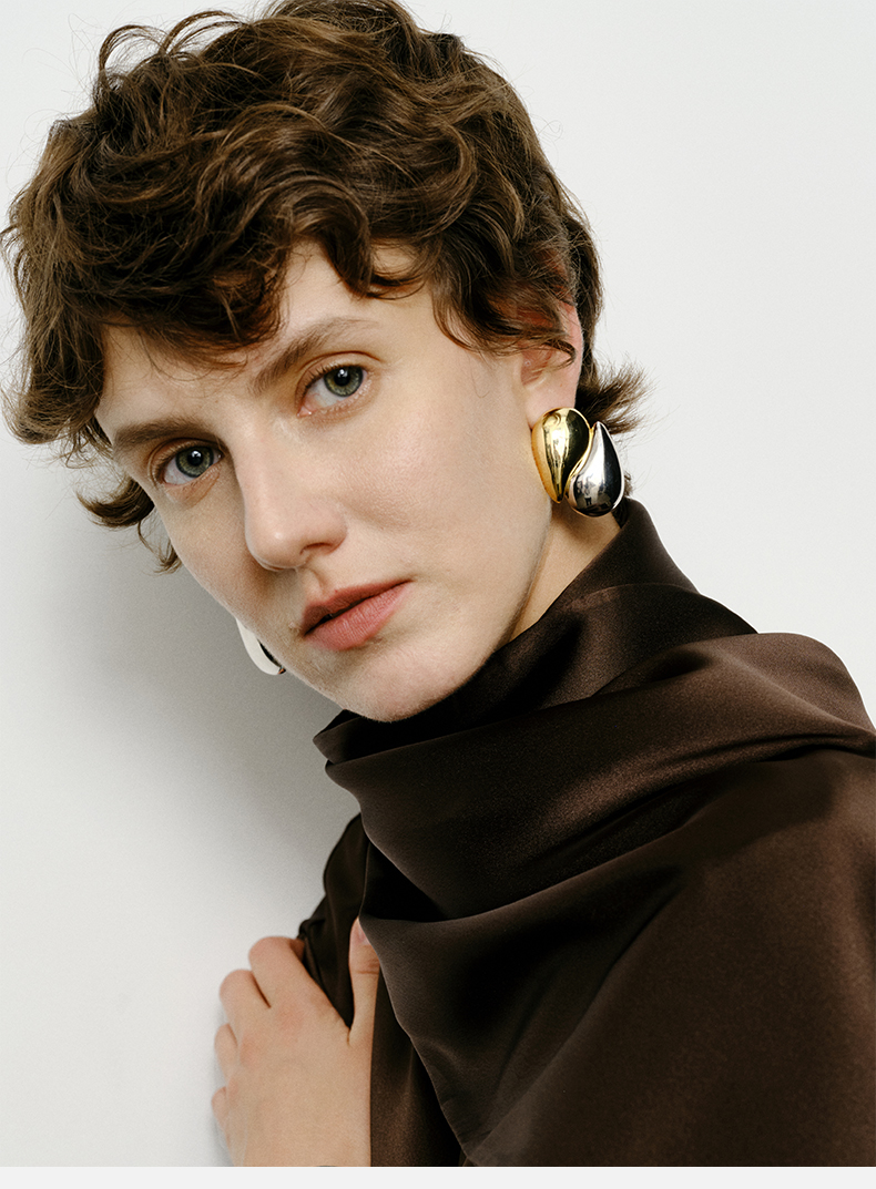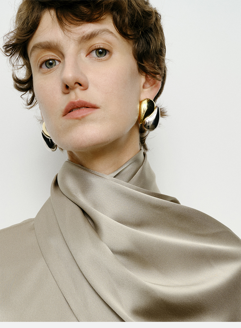 HIDEMI 【papi酱同款】流线型设计感金银拼色椭圆形耳钉