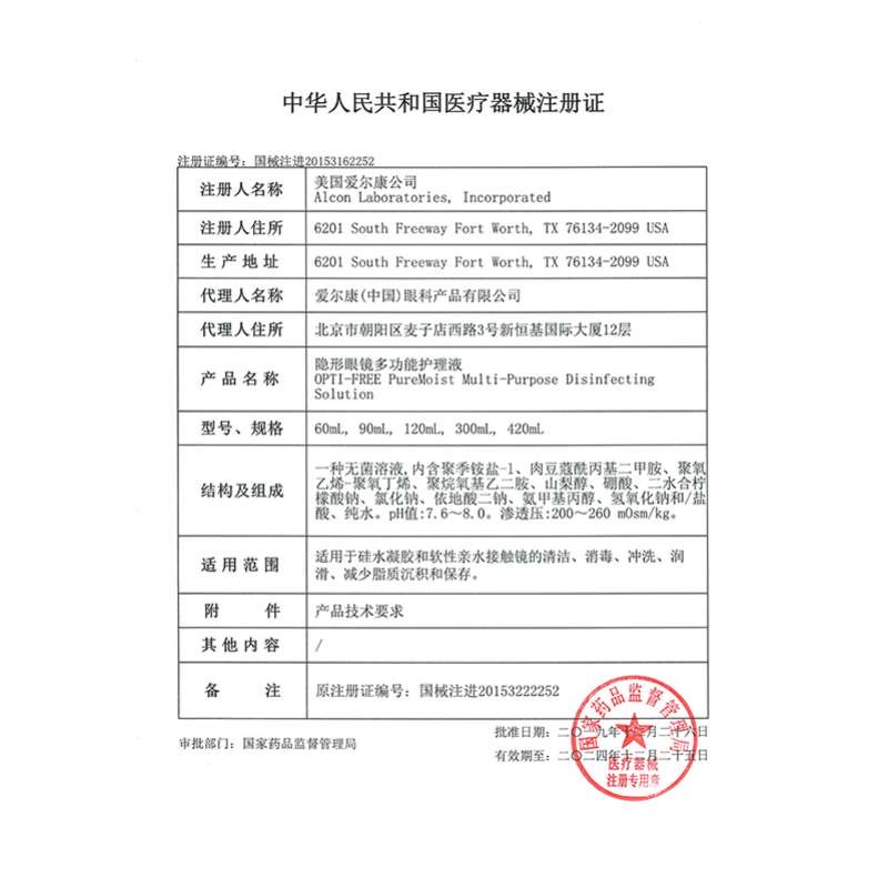 爱尔康 恒润护理液套装300ml+90ml