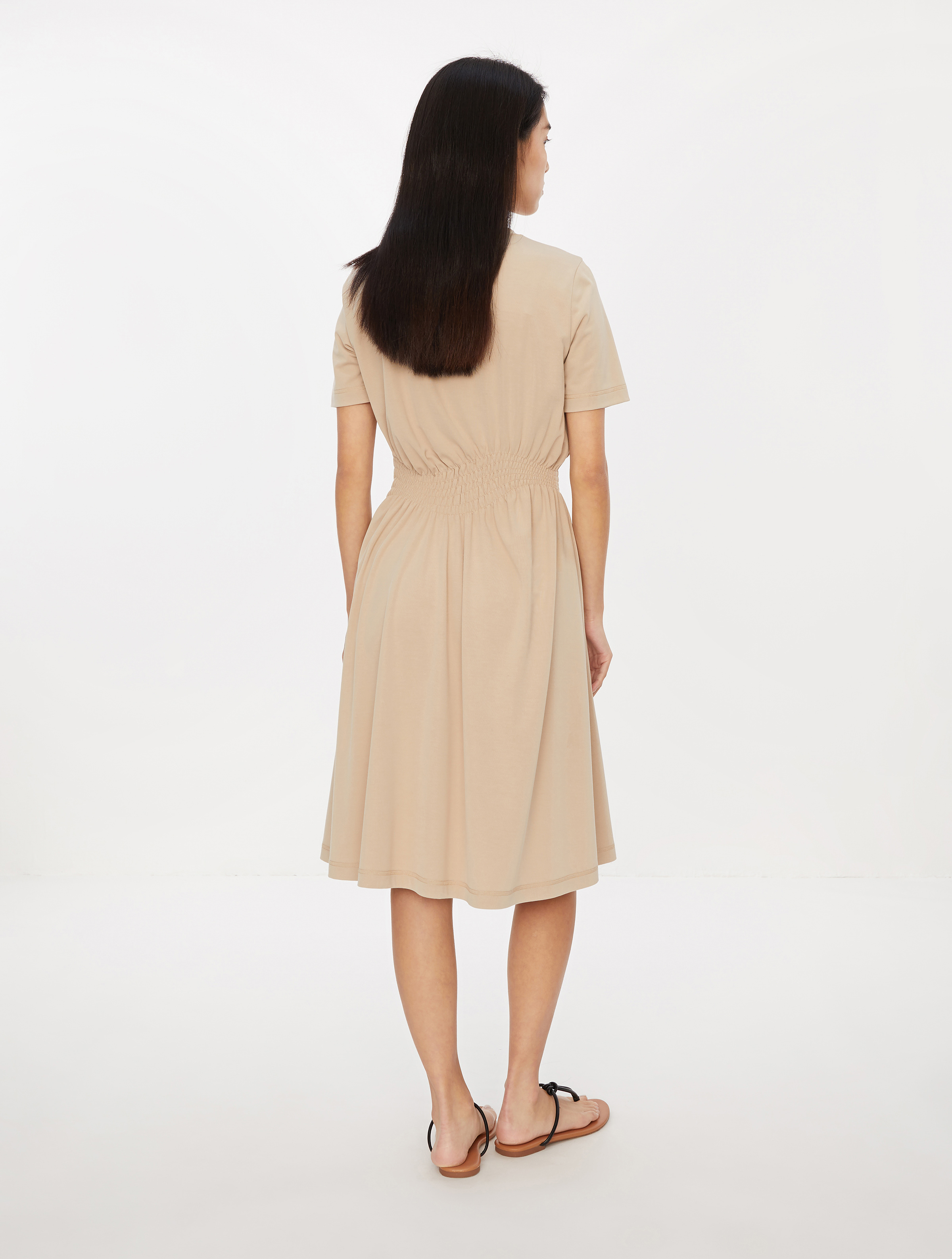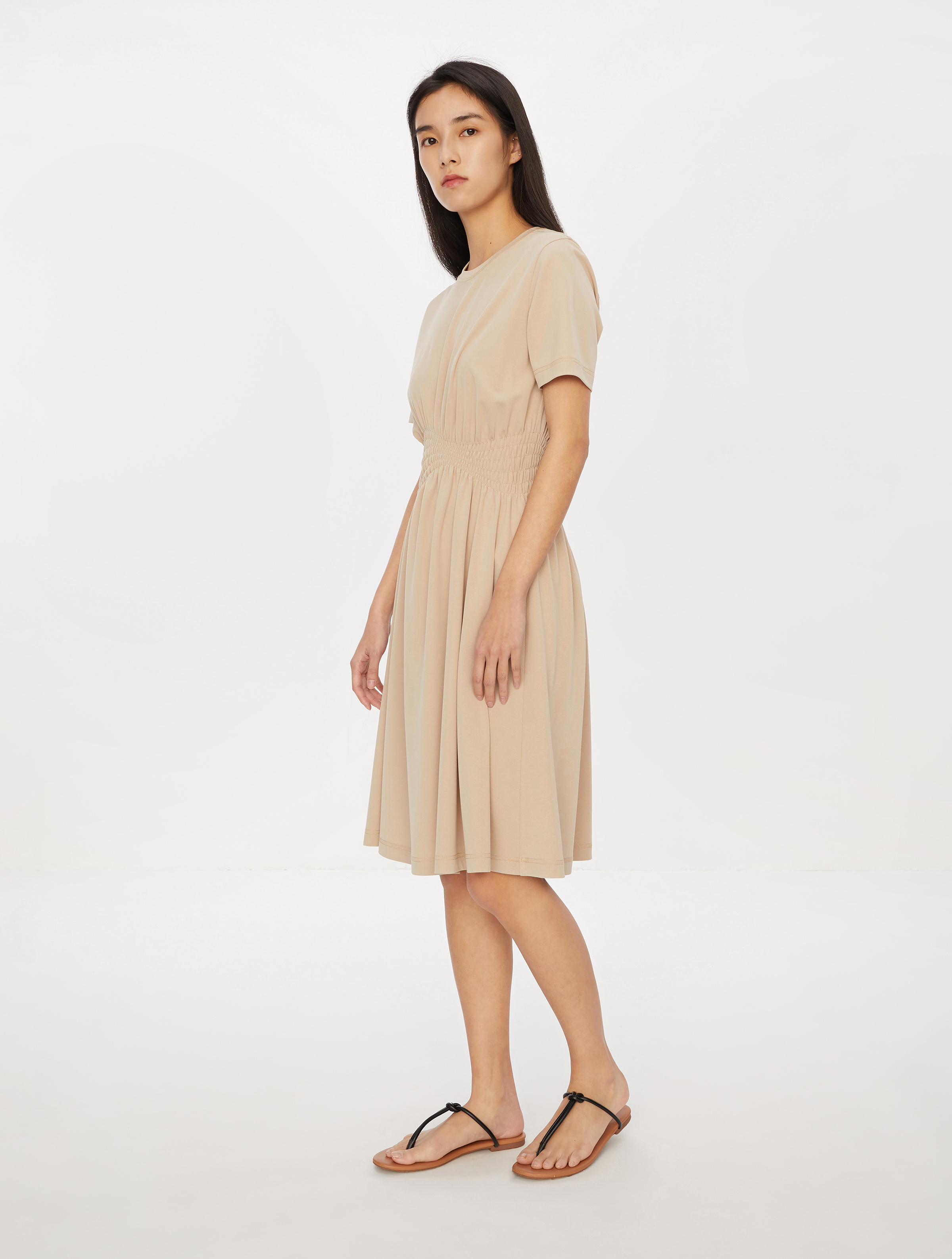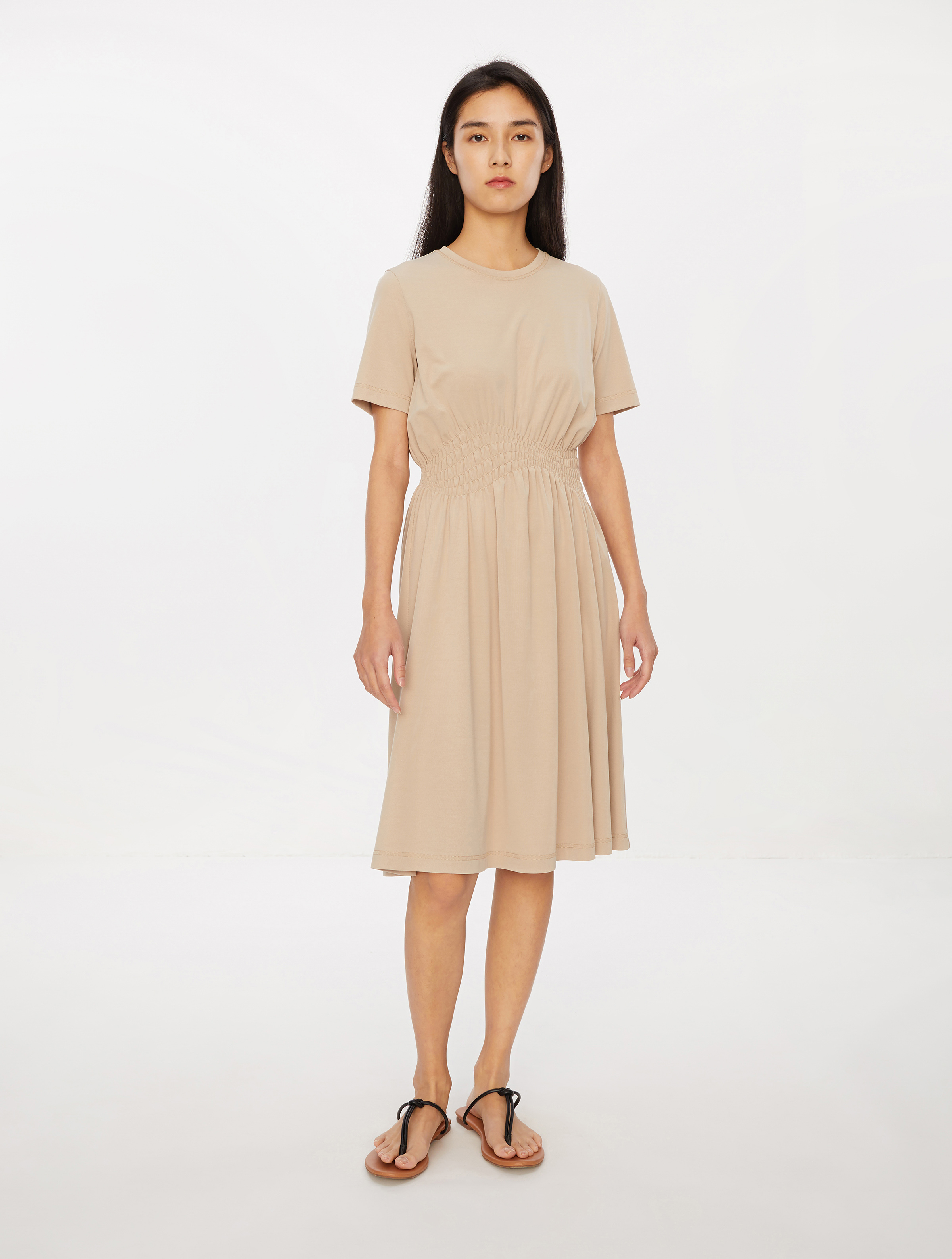 腰部饰本季主题图形细浪纹弹⼒抽皱设计,巧妙收腰更显挺拔⽓质。
