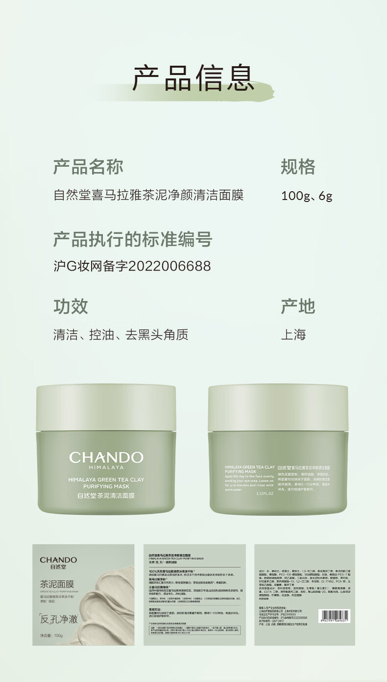 自然堂喜马拉雅茶泥净颜清洁面膜100g