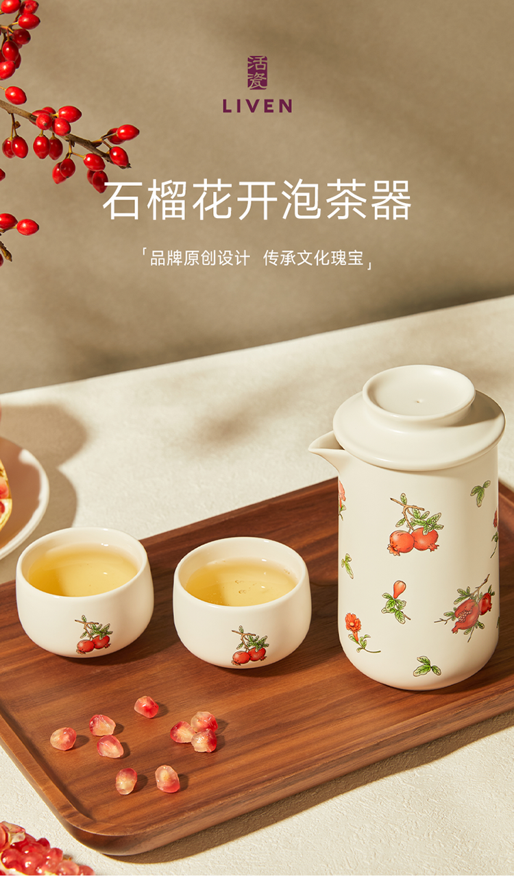 石榴花开泡茶器 壶180ml (双层) /杯60ml