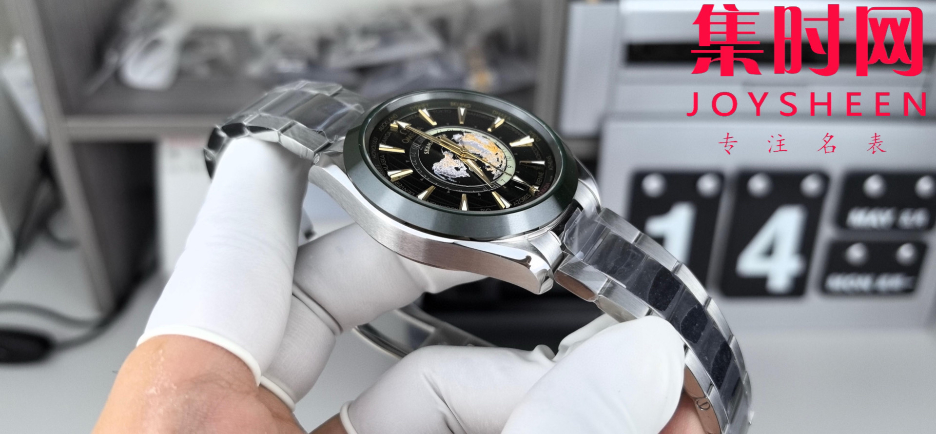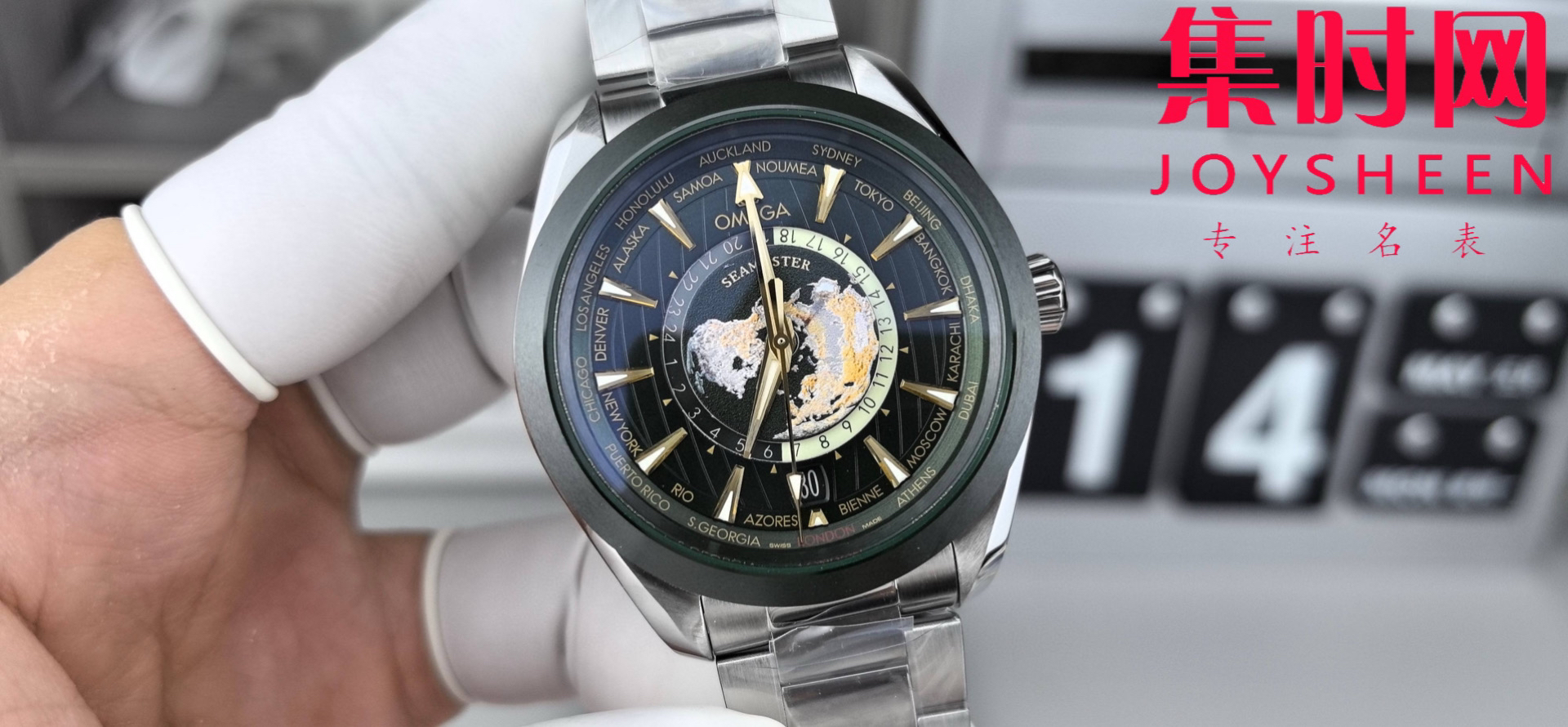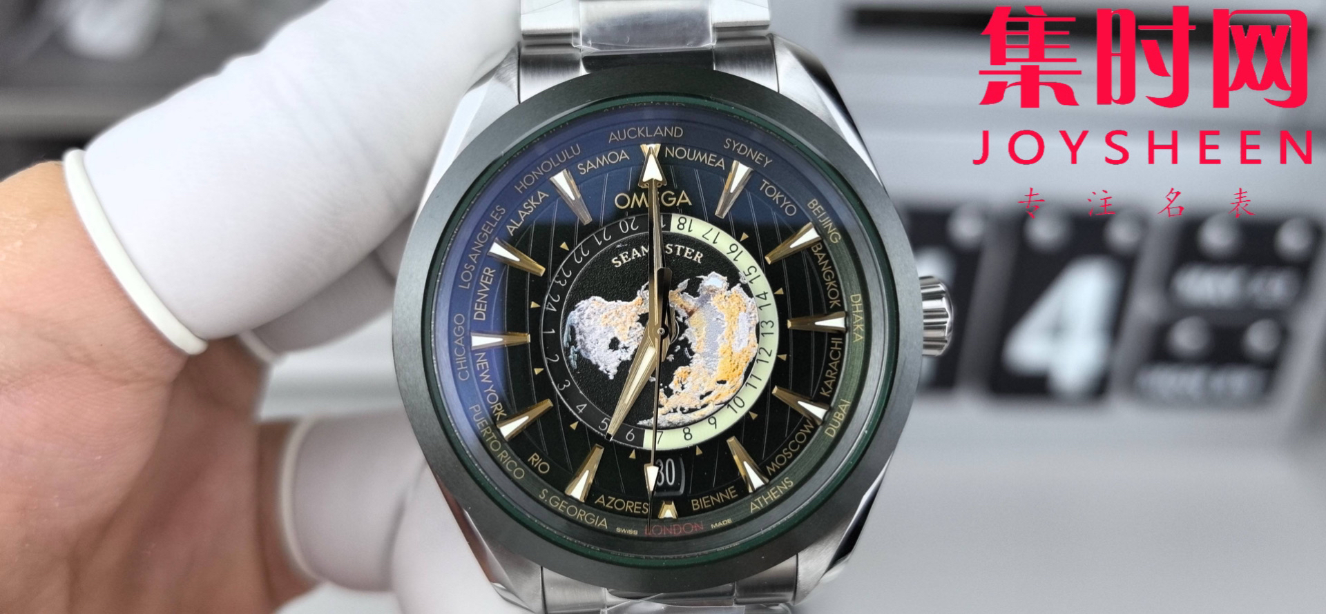 VS欧米茄新款海马世界时系列 VS海马世界时墨绿 绿海马 海马世界时绿色款 男士腕表 表径43mm Aqua Terra 世界时腕表。一款可以戴着环游世界的世界时腕表,激光烧蚀蓝色海洋,陆地浮雕勾勒,24小时hesalite水晶环。辽阔世界尽在掌握,于方寸之间伴您开启环球之旅!搭载VS定制Cal.8938多功能全自动机械机芯,蓝宝石水晶镜面,316L精钢表壳,陶瓷圈口,316L精钢表带,原装折叠扣,功能同步原装真实可用!表径43mm