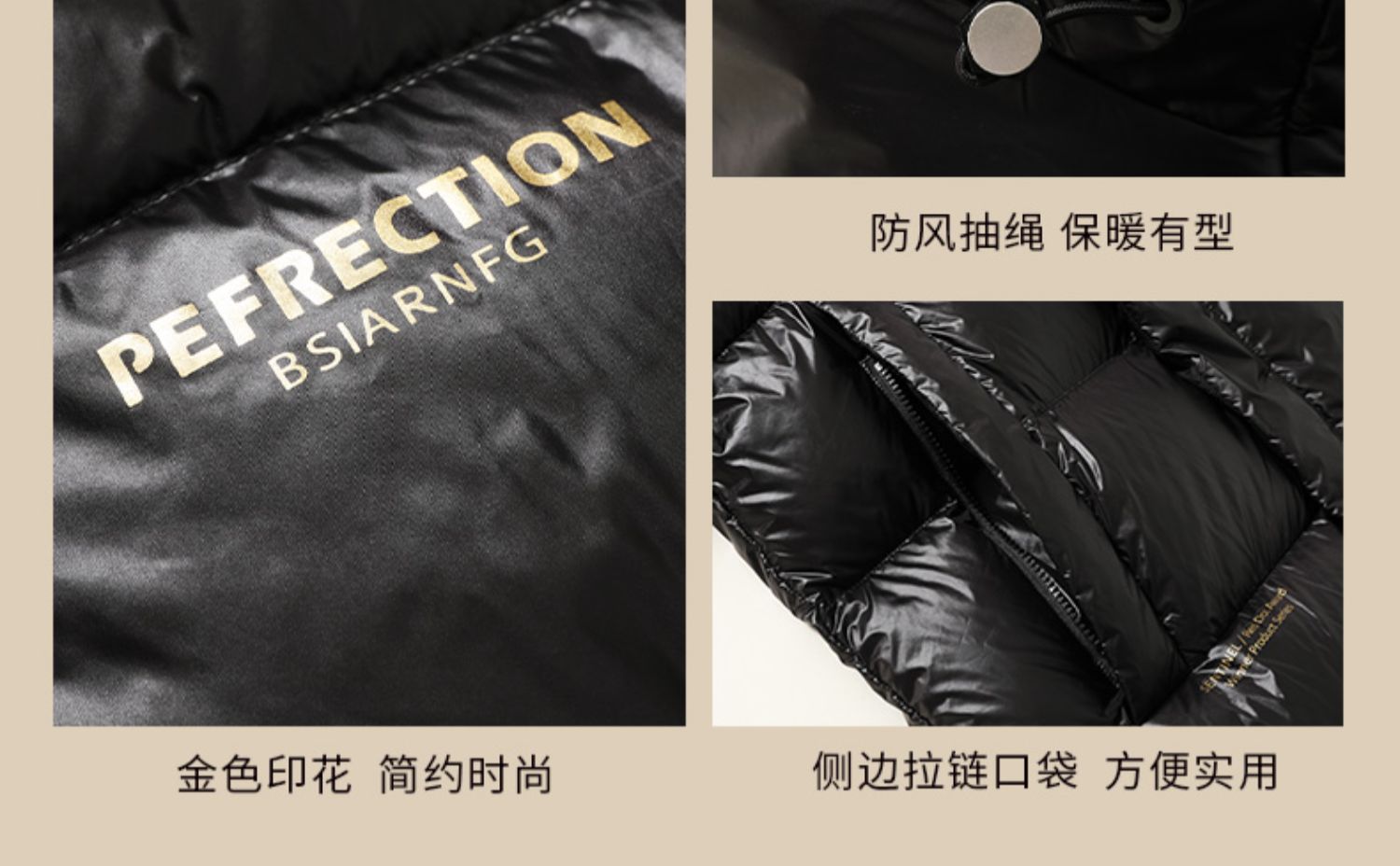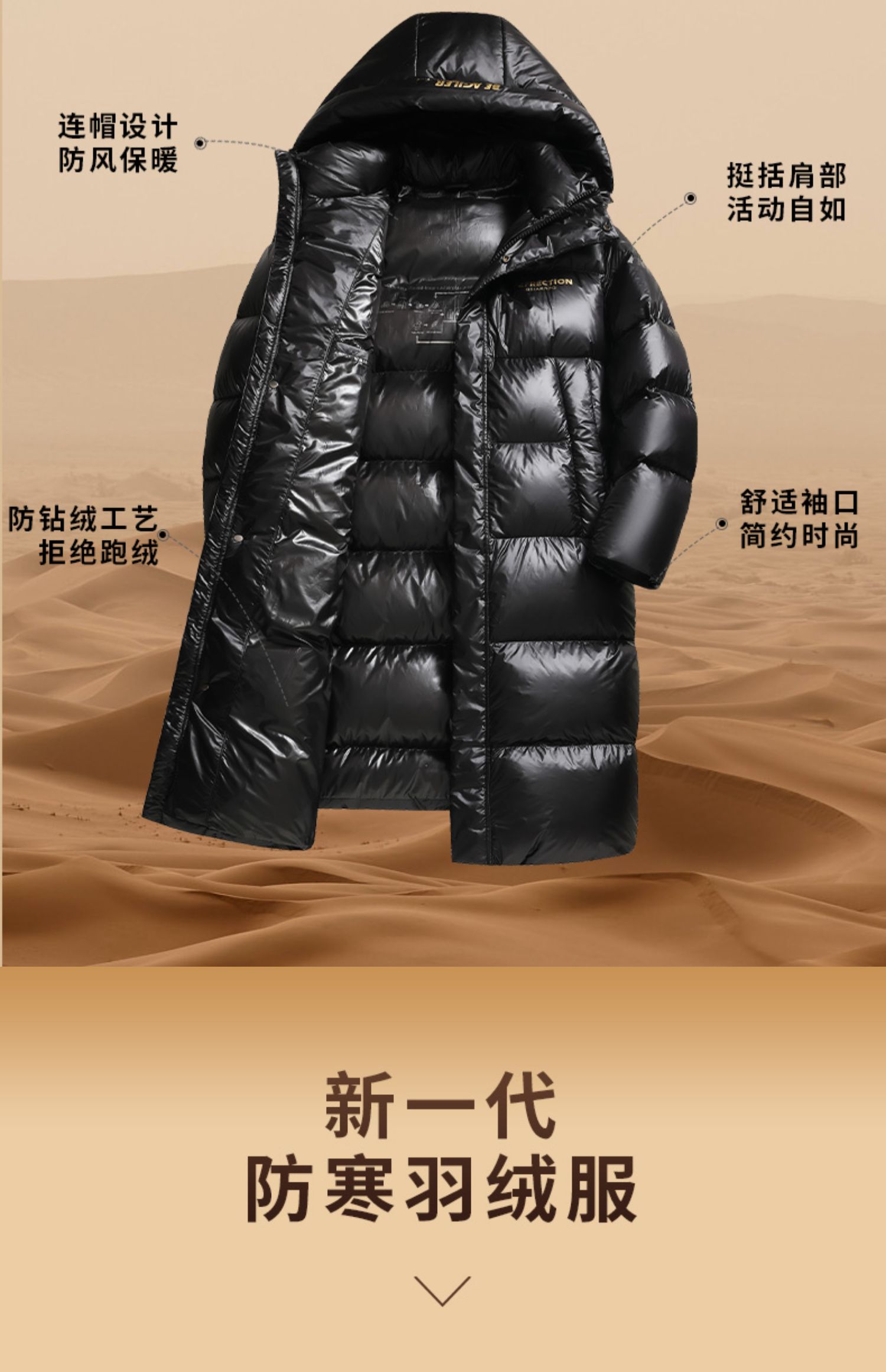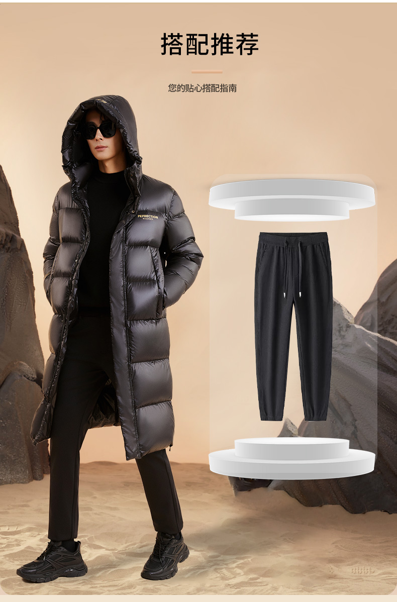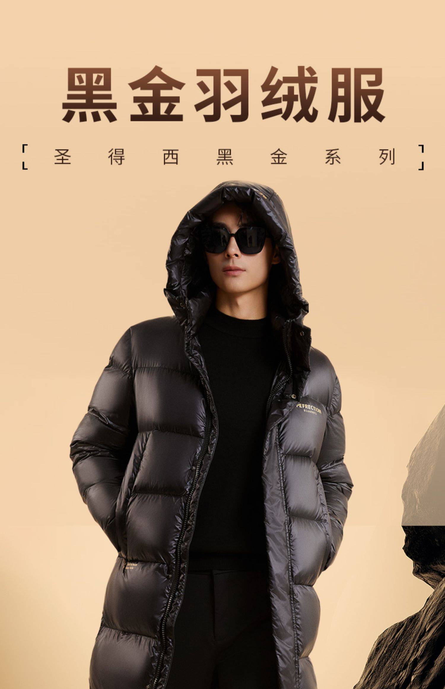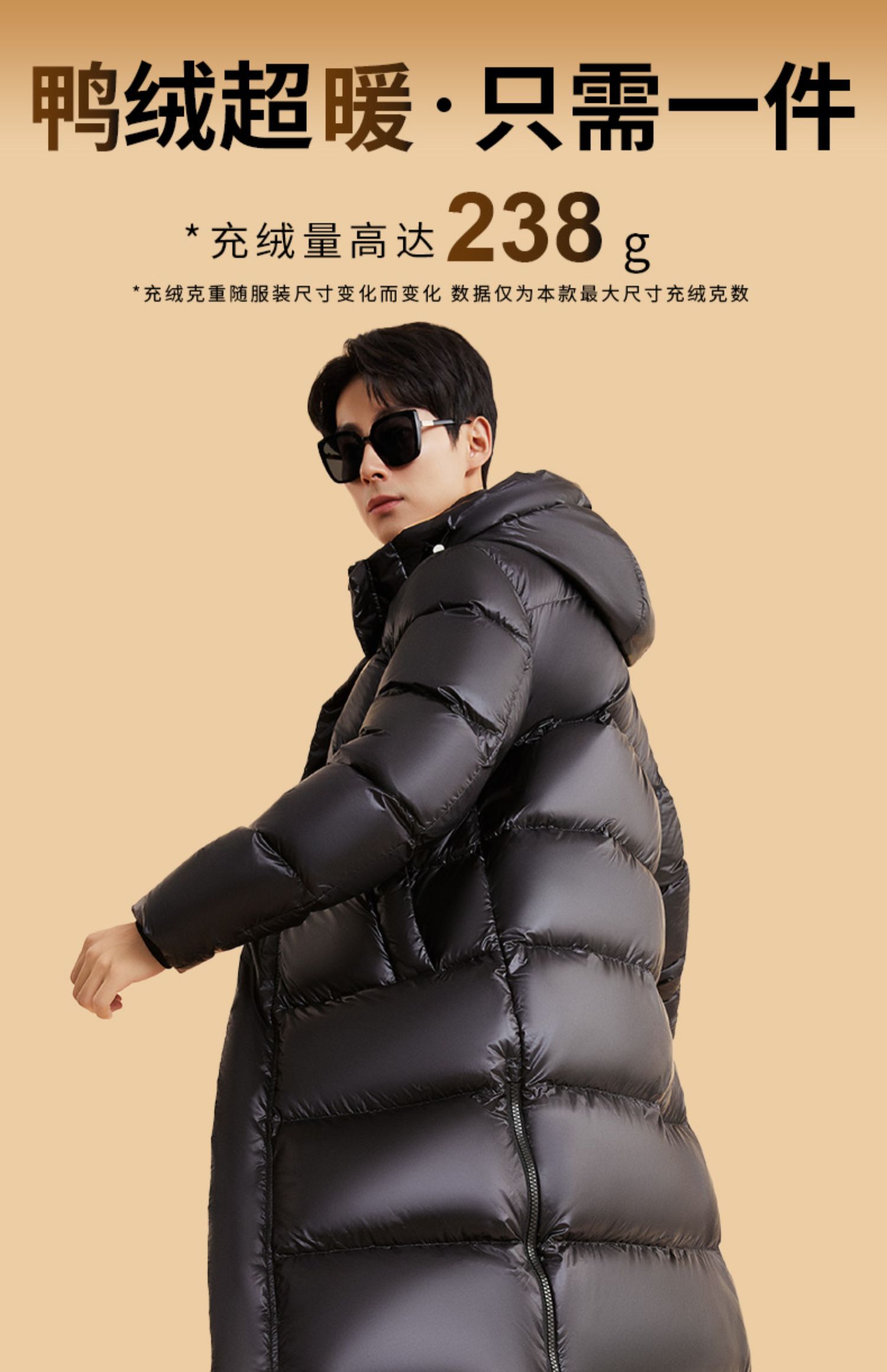 圣得西男装黑金系列长款可拆卸连帽加厚面包羽绒服2362942771