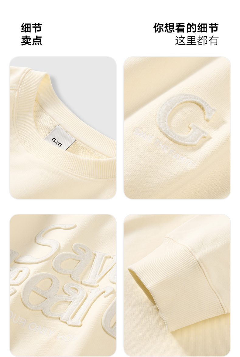 GXG男装 多色撞色绣线简约圆领卫衣24冬季热卖G24X314033