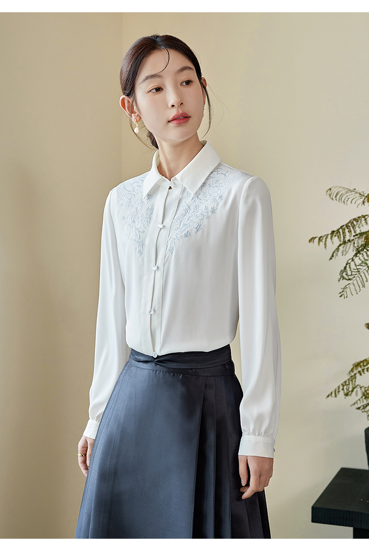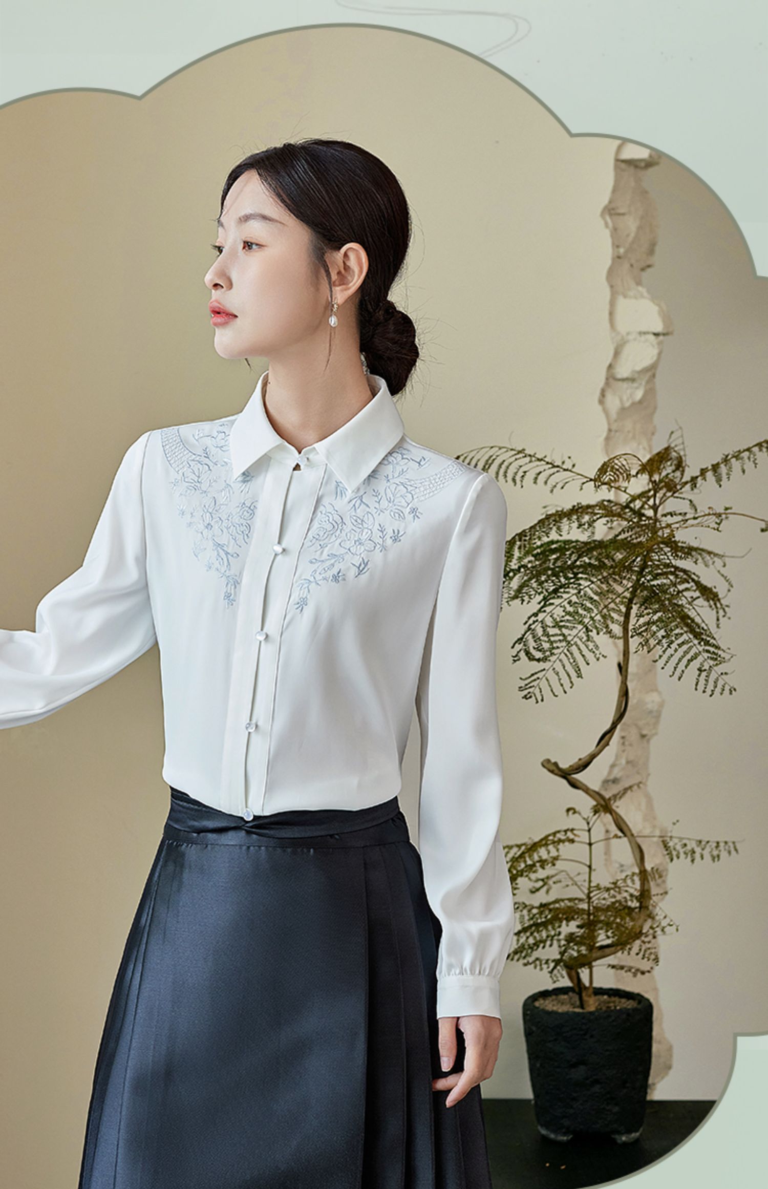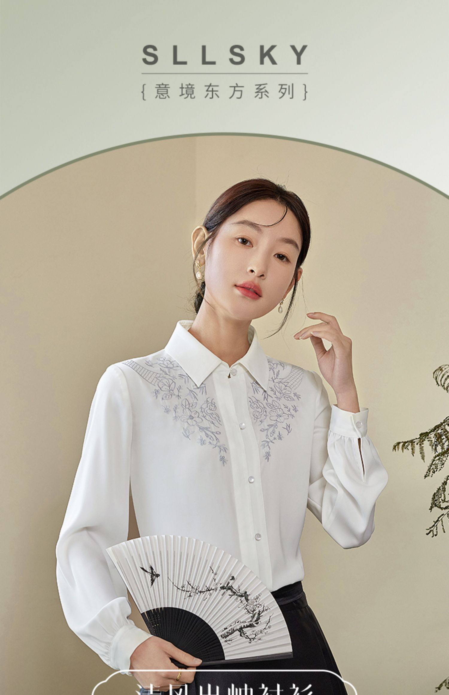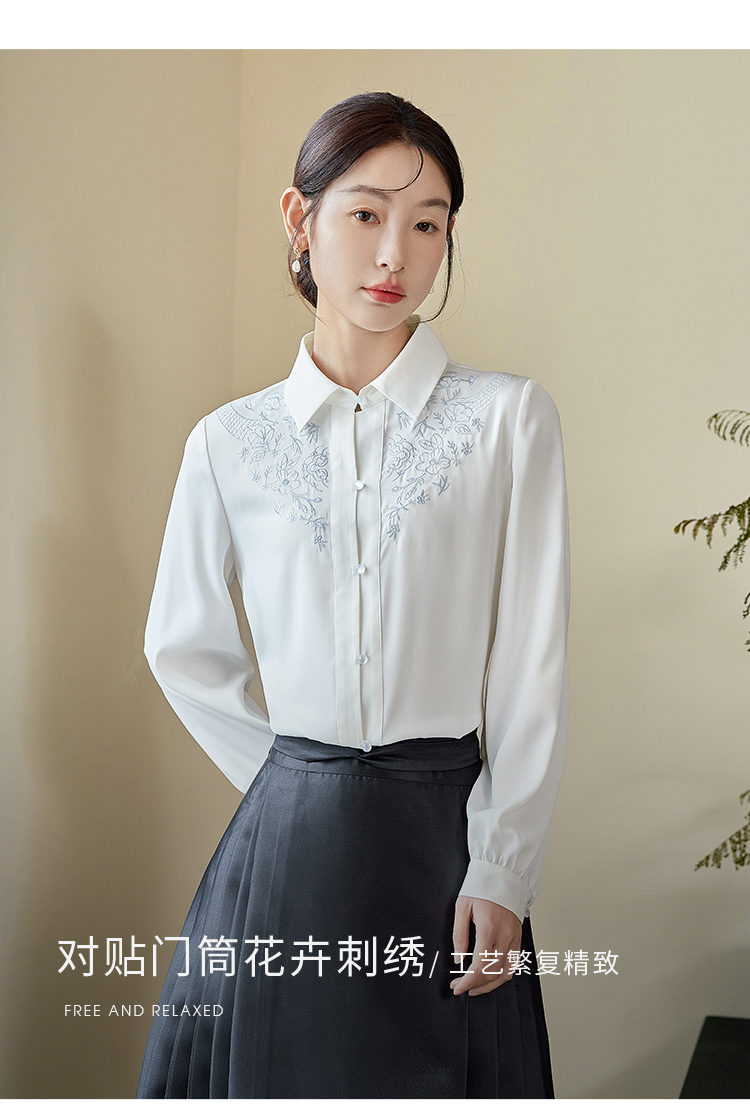 【年终特卖】【东方系列】熙世界国风衬衫2025秋款高端仿醋酸缎面刺绣上衣女