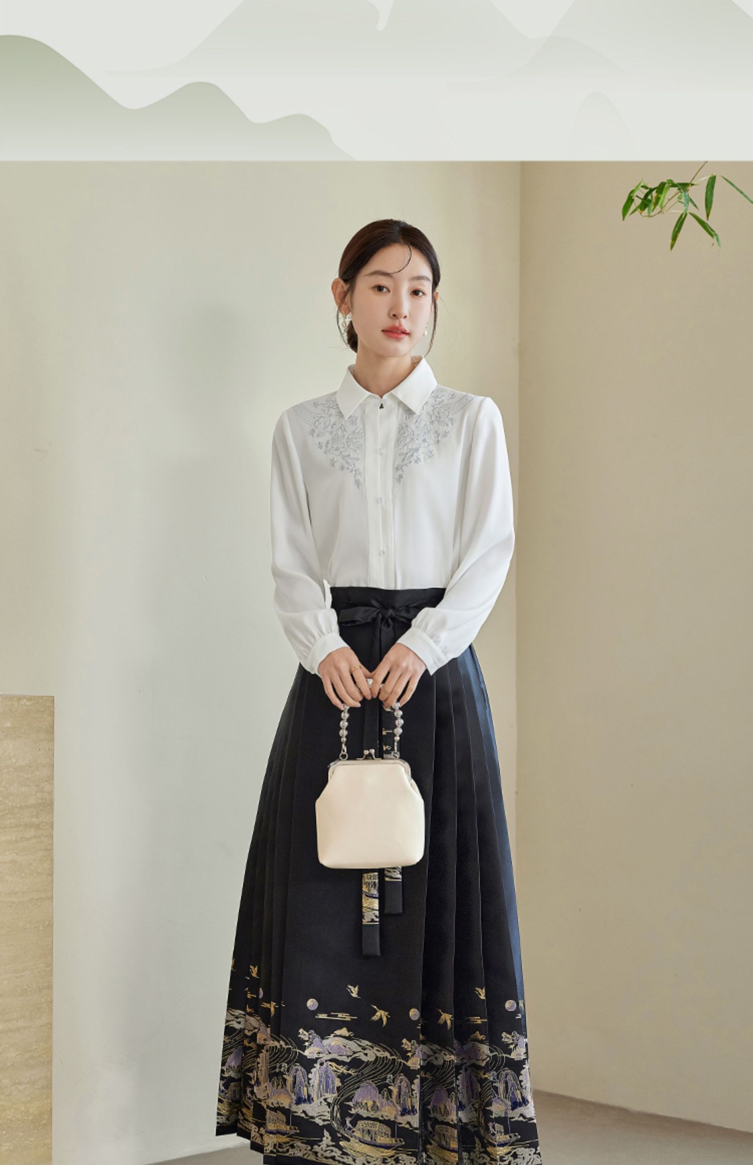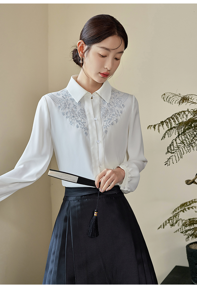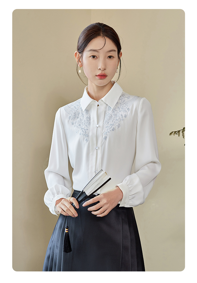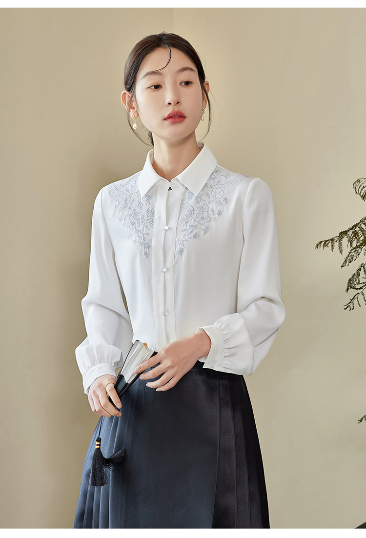 【年终特卖】【东方系列】熙世界国风衬衫2025秋款高端仿醋酸缎面刺绣上衣女