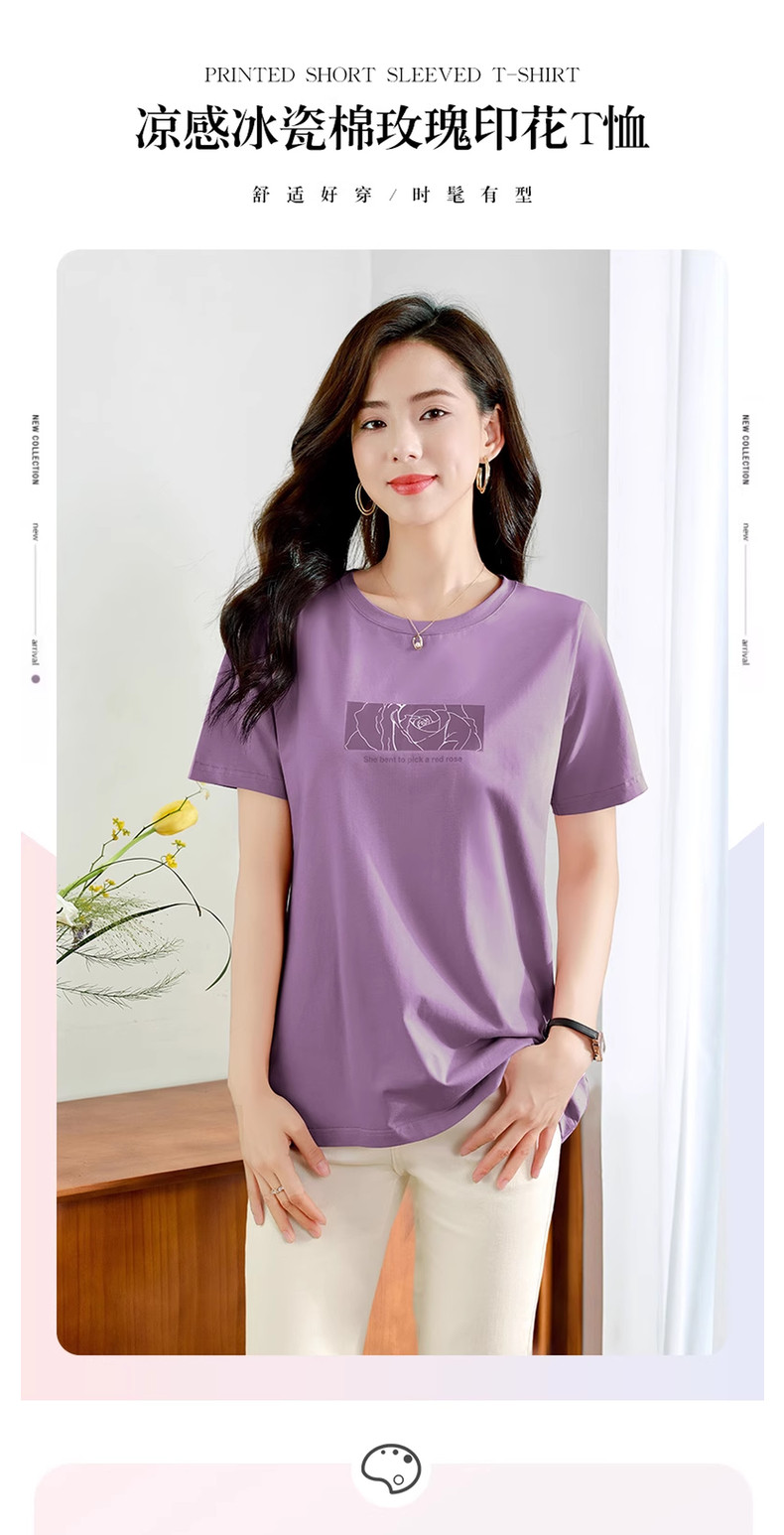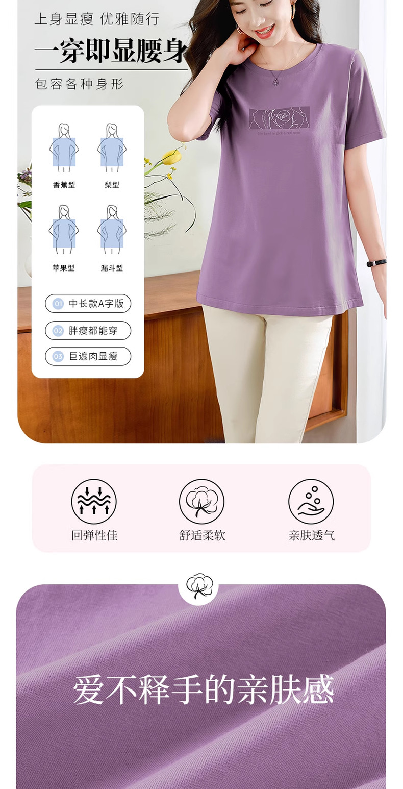 芳妮诗短袖女t恤夏季2026新款大码显瘦宽松女装妈妈洋气上衣夏装