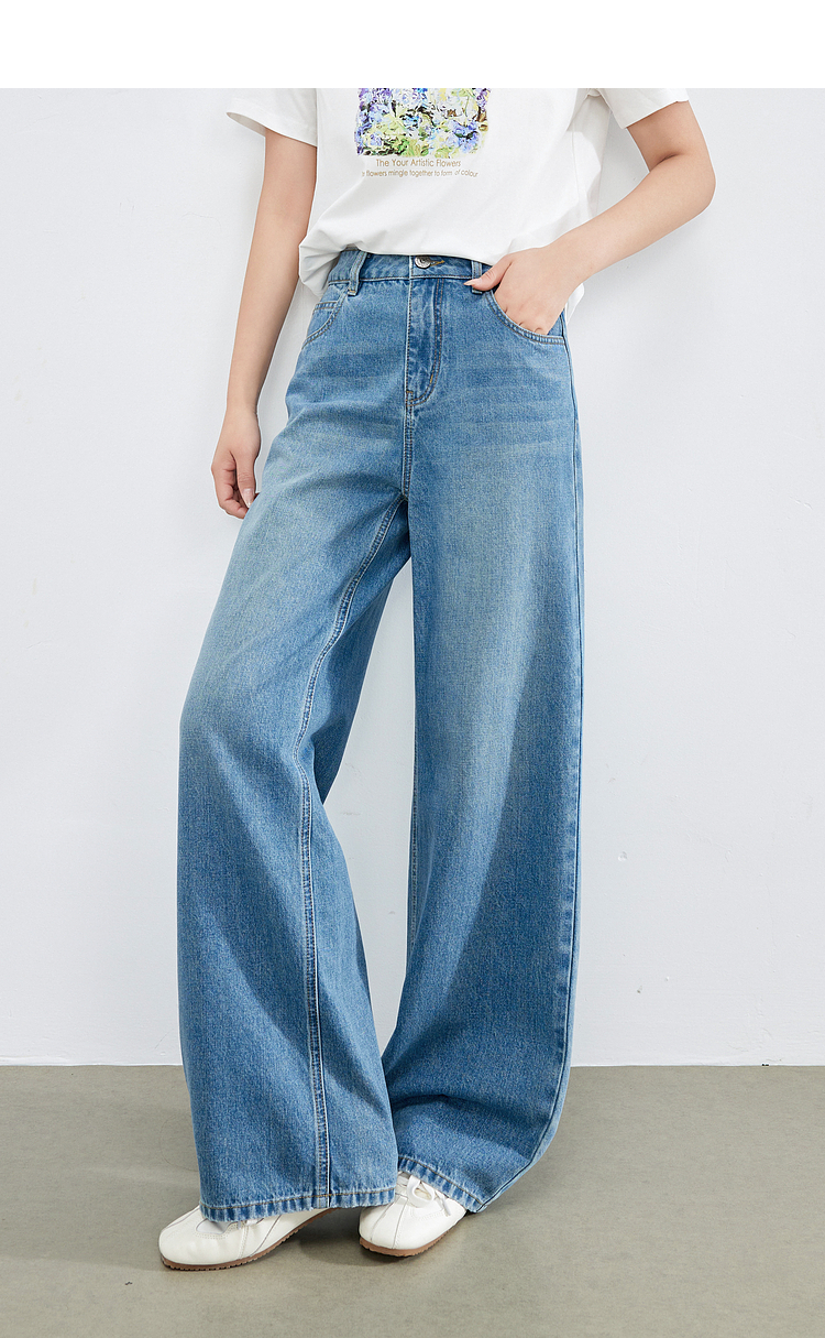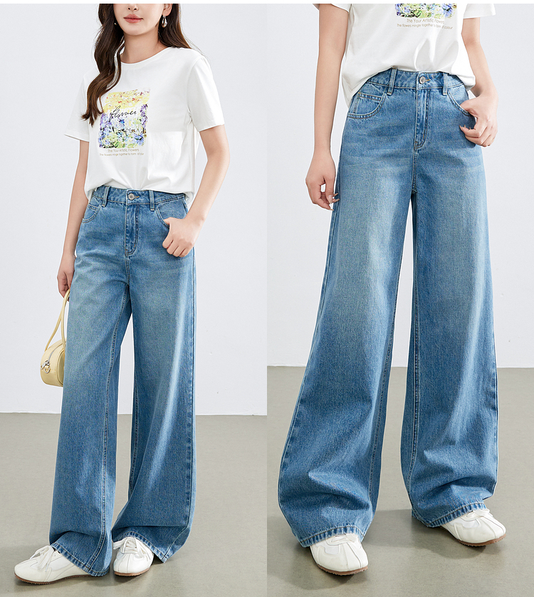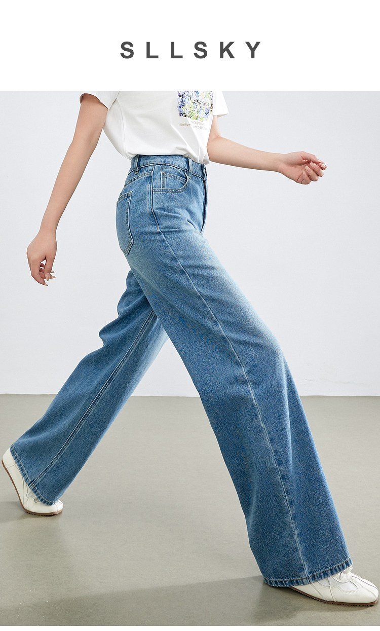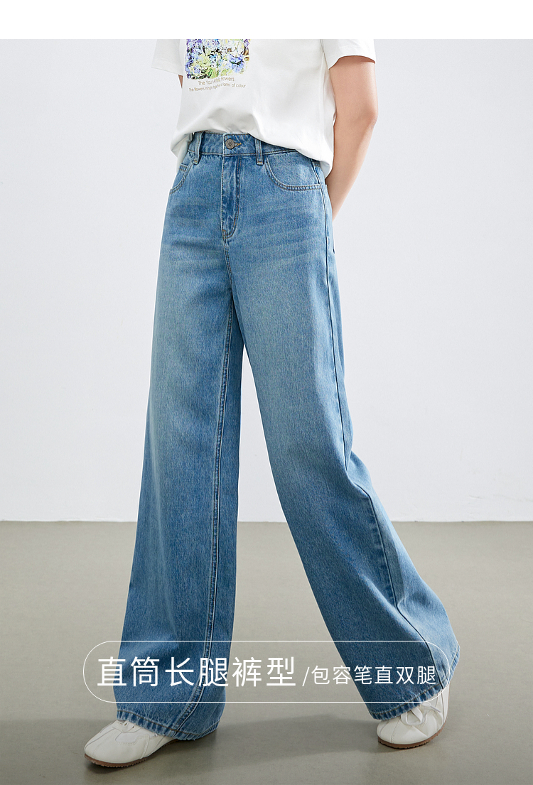 熙世界浅蓝窄版阔腿牛仔裤夏季薄款百搭显高显瘦宽松直筒长裤子