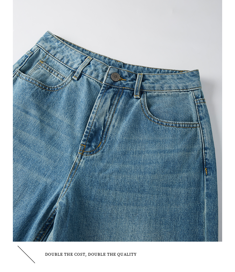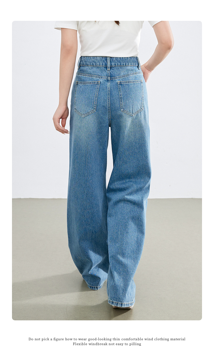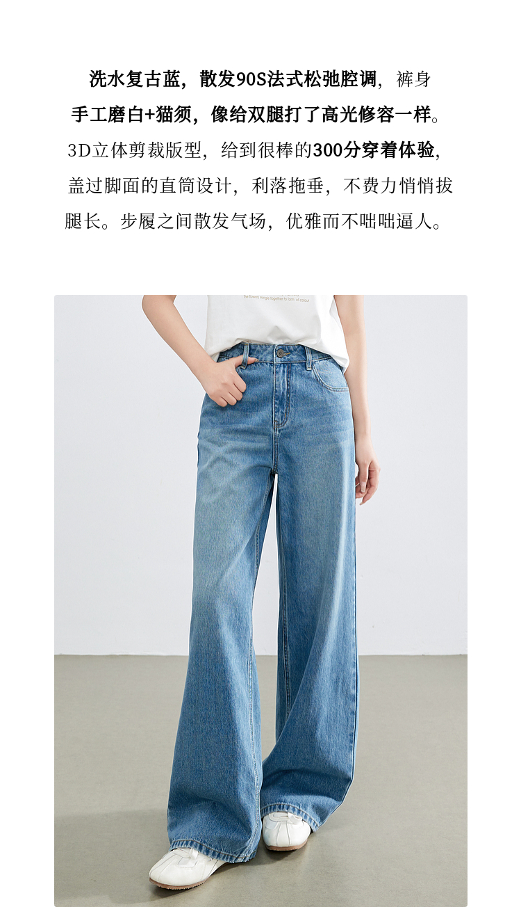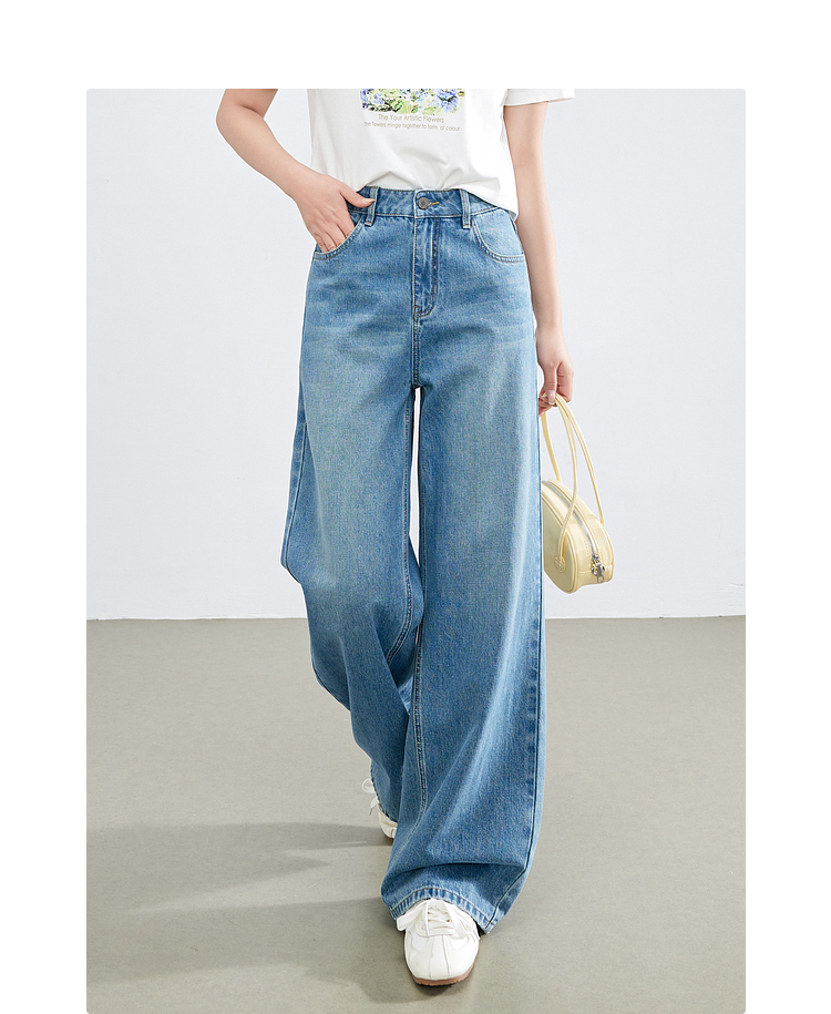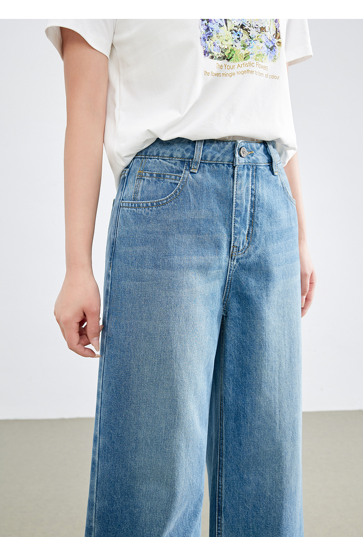 熙世界浅蓝窄版阔腿牛仔裤夏季薄款百搭显高显瘦宽松直筒长裤子