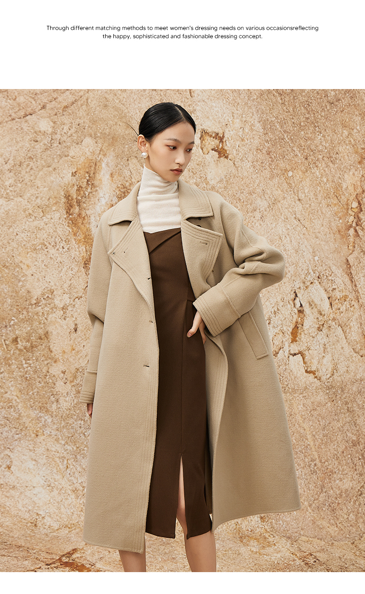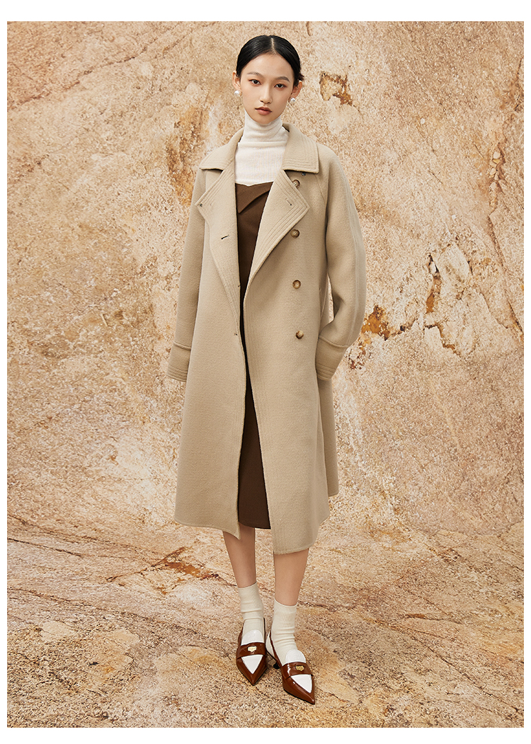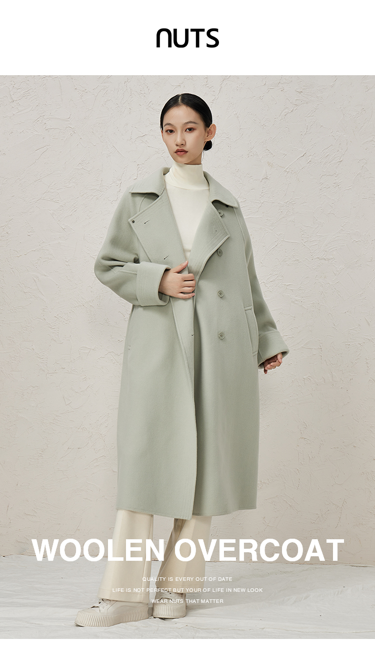 NUTS商场同款秋冬季高级感气质双面毛呢长款大衣外套女341152045